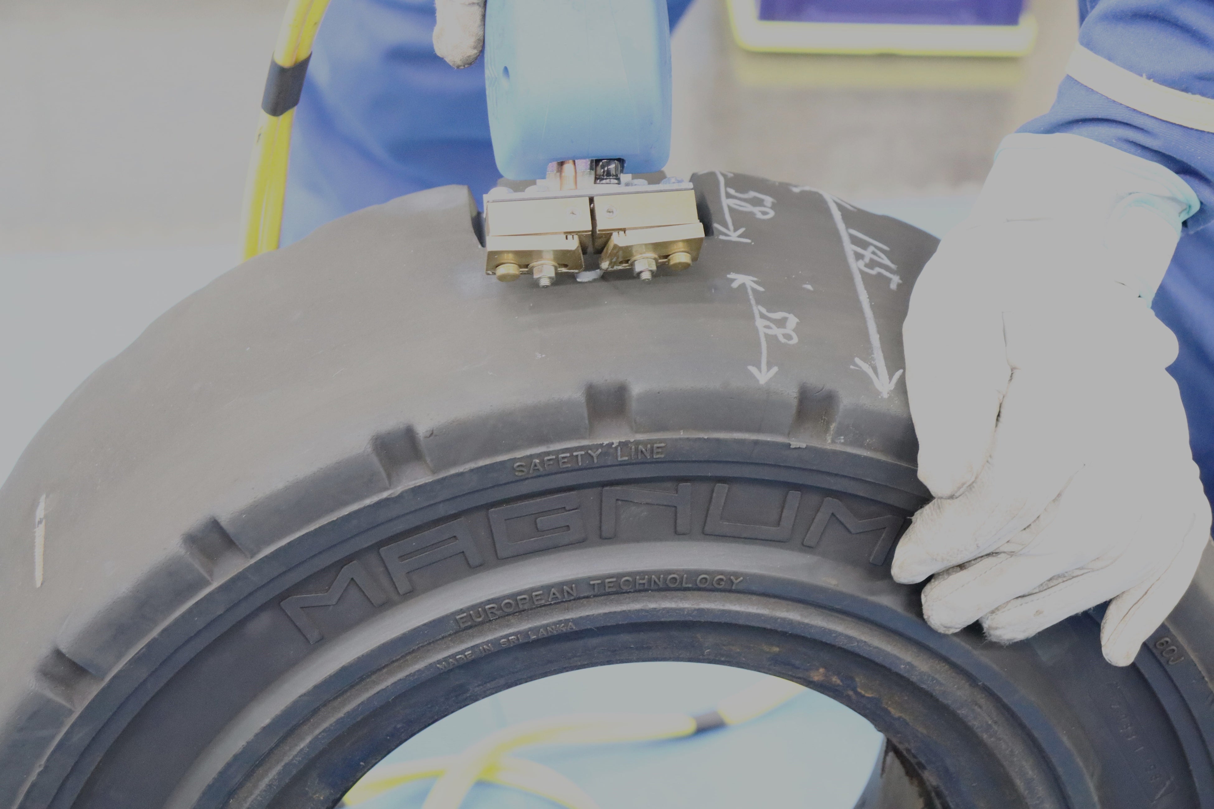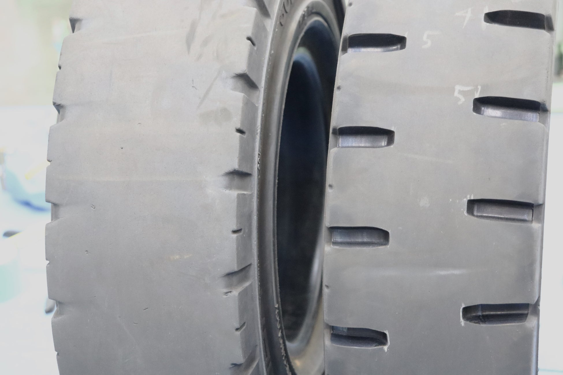 このたび、改めてフォークリフト用ソリッドタイヤのリグルーブの有益性の理解を深めるため、同タイヤのリグルーブのトレーニングやデモに注力していきます。現在、フォークリフト用タイヤは、その多くが摩耗によりトレッドパターンが消えてしまうと廃棄されています。