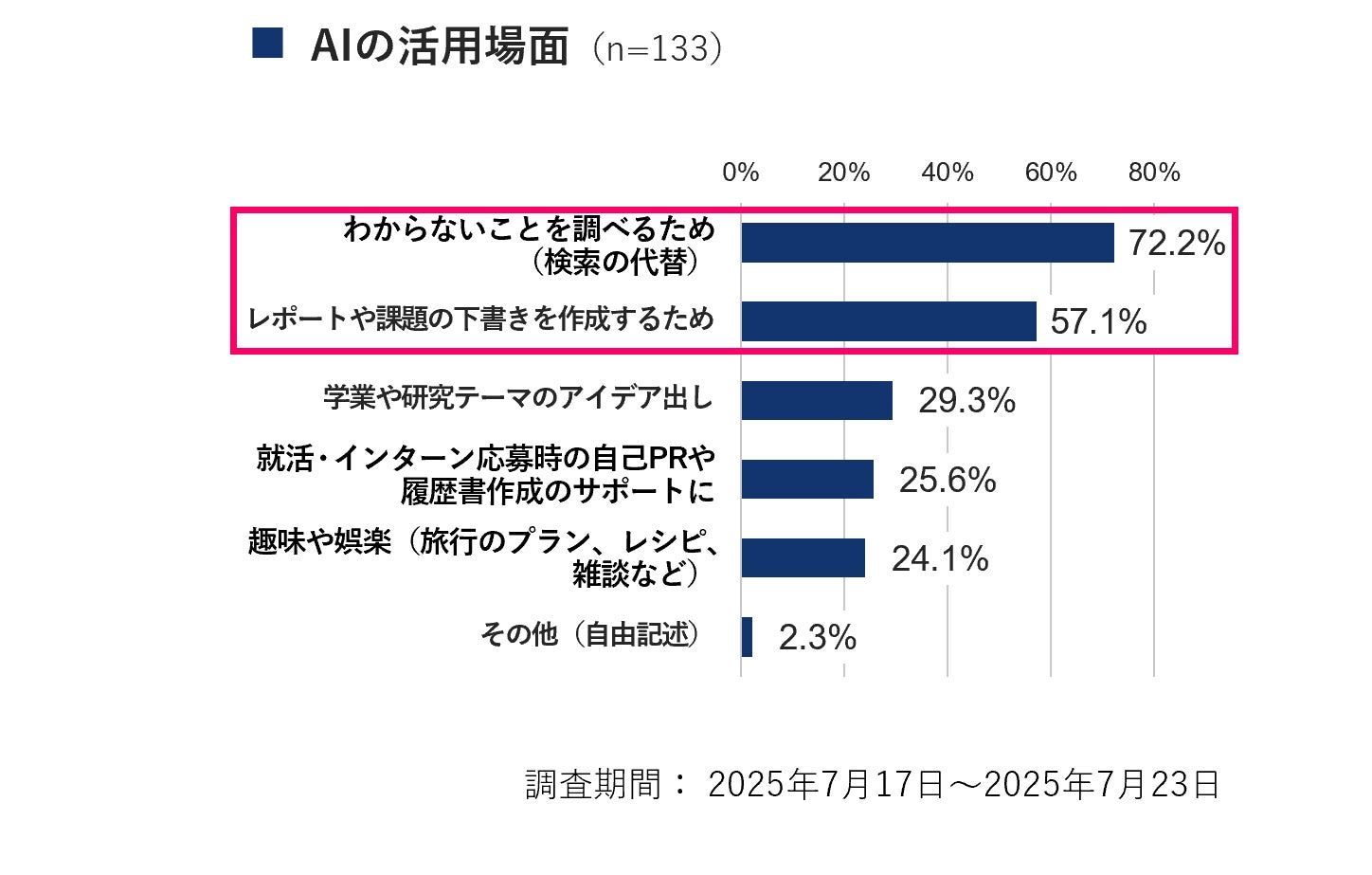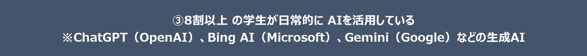 「ChatGPT」が公開された2022年後半以降、わずか数年の間にAI技術は飛躍的な進化を遂げ、その活用は学習や情報収集のあり方を大きく変え、その影響はビジネスシーンだけでなく、学生の間にも大きく広がっていることが示されました。
