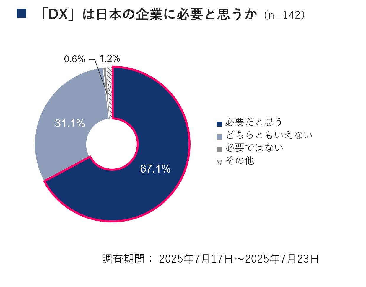 ①日本の企業にDXが必要 だと思う学生は67.1%