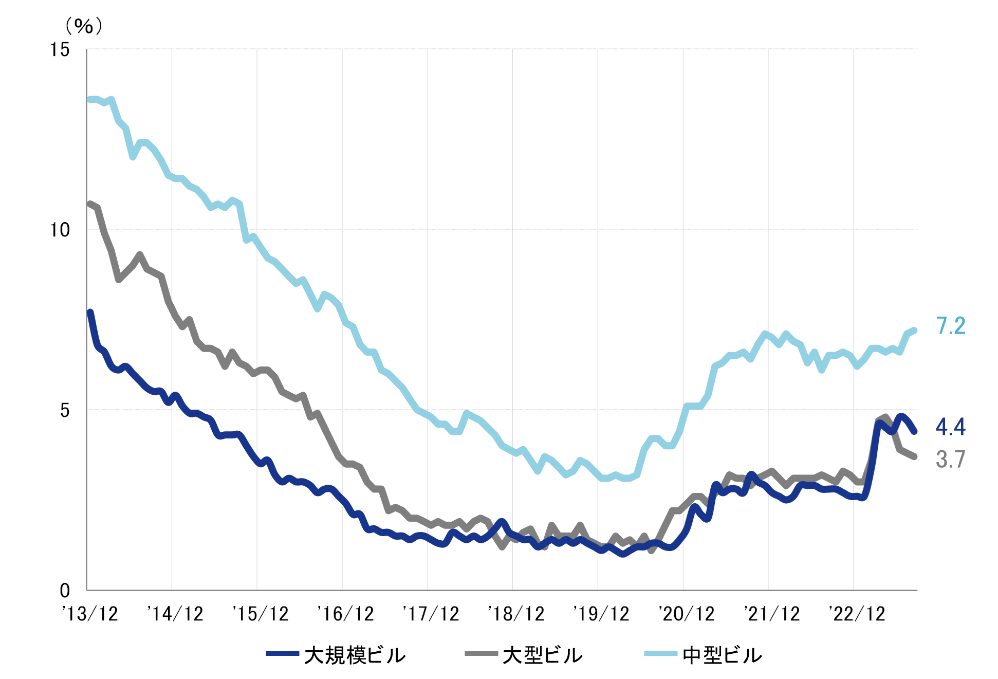 規模別 空室率:「中型」2ヵ月連続で7%台を記録