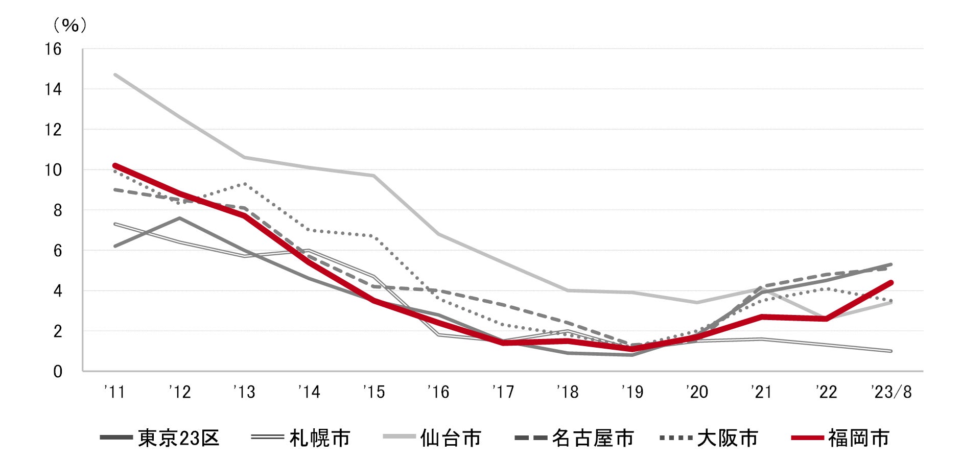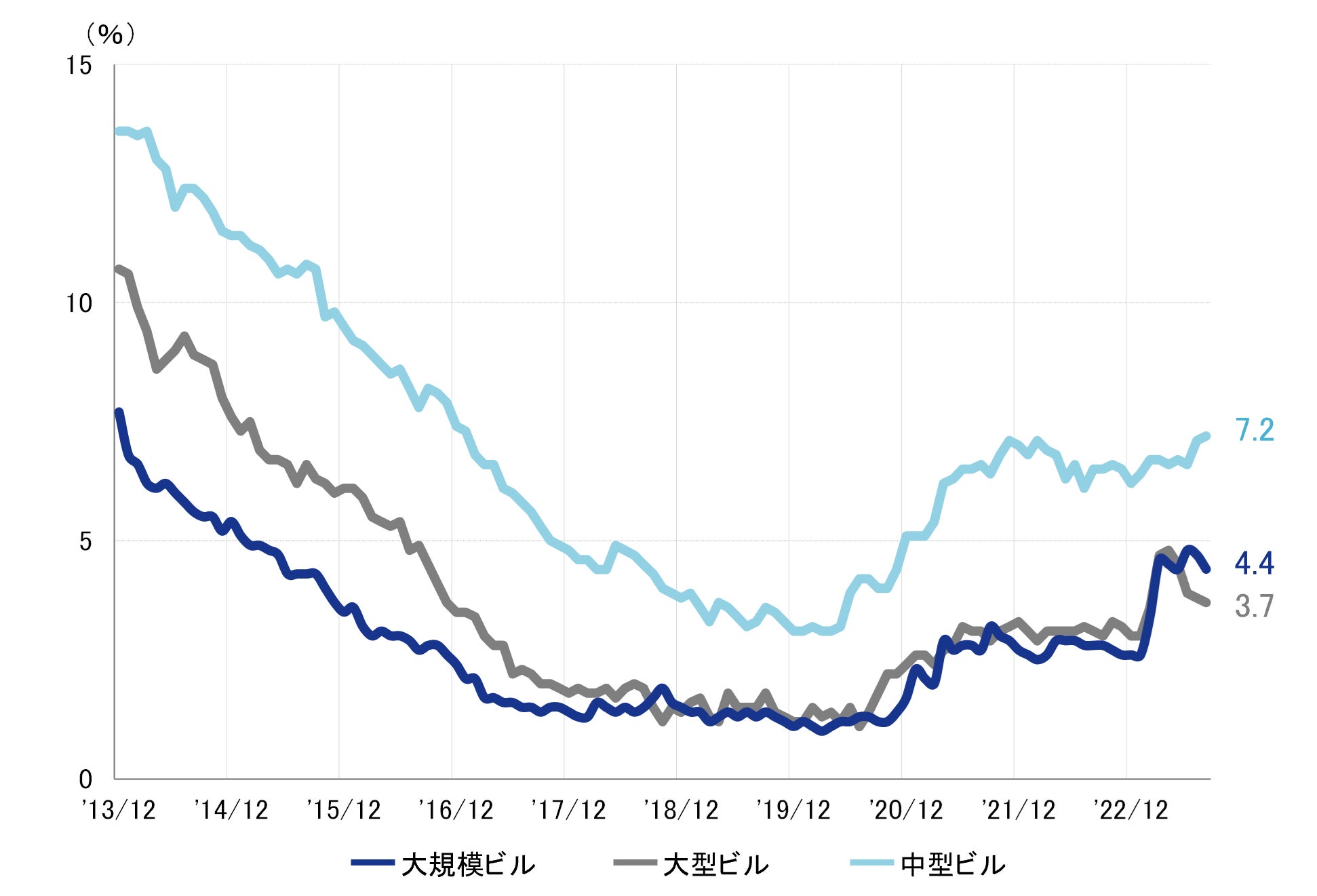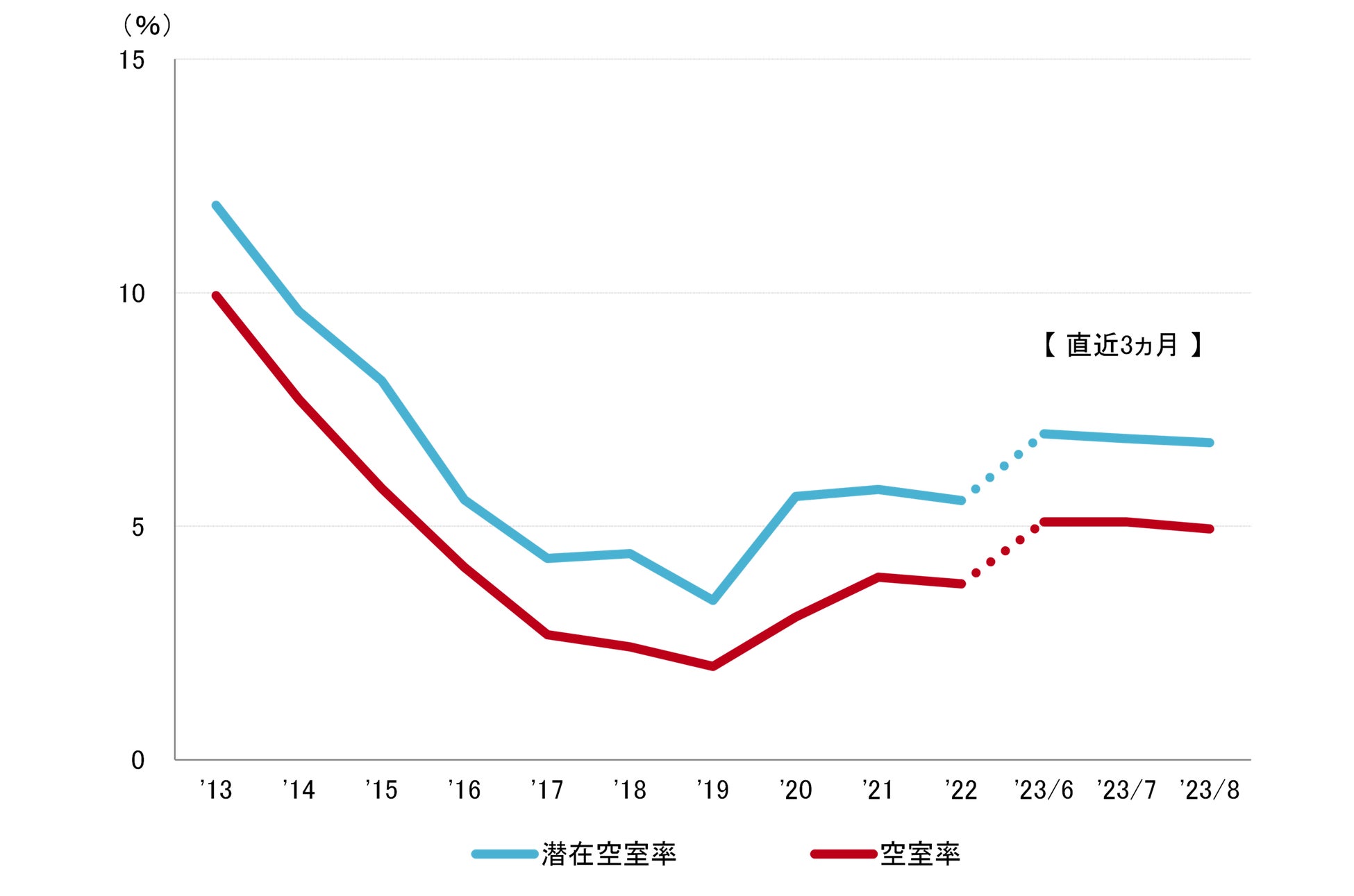 空室率 今年竣工した複数の新築ビルでの成約が主な低下要因