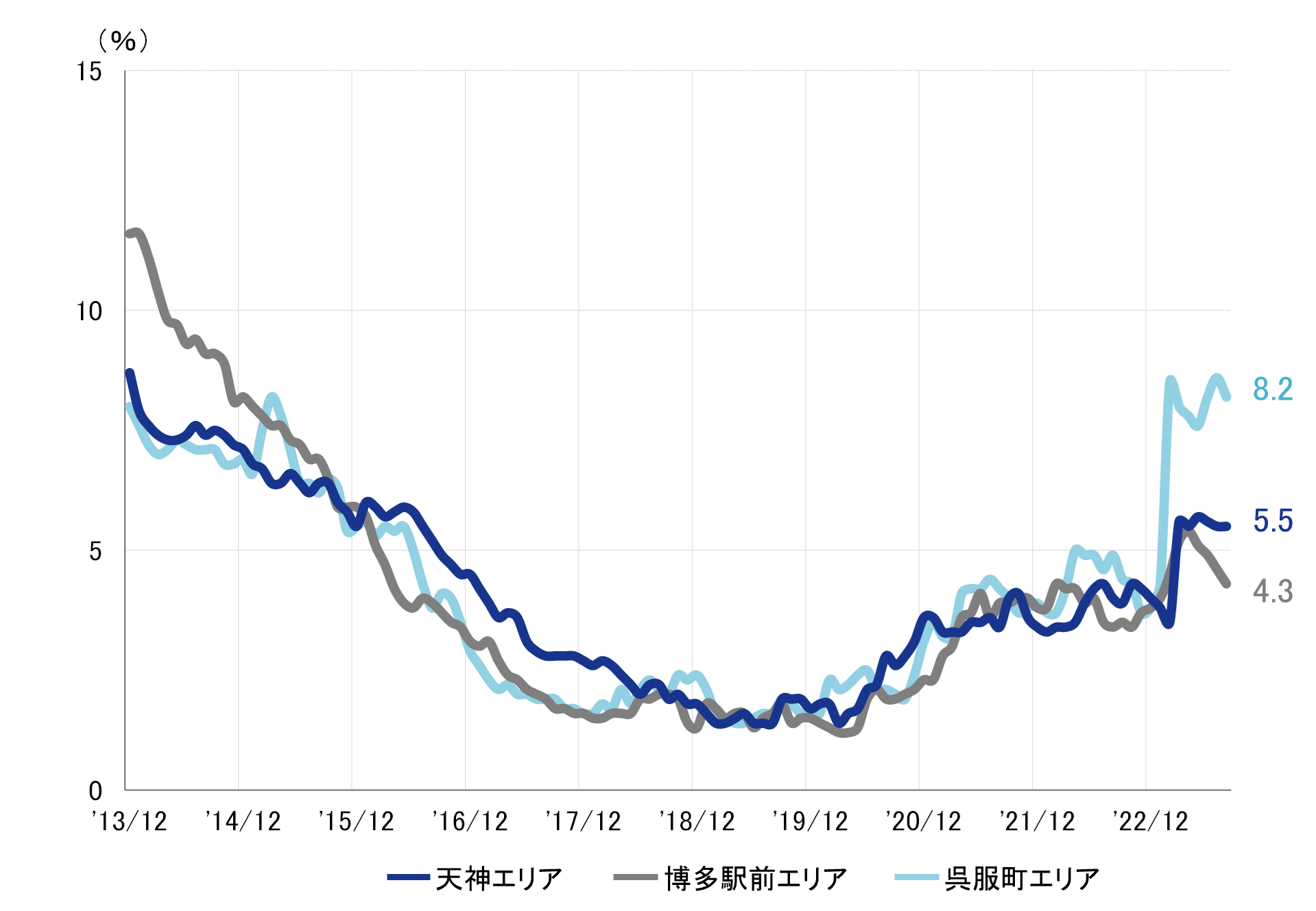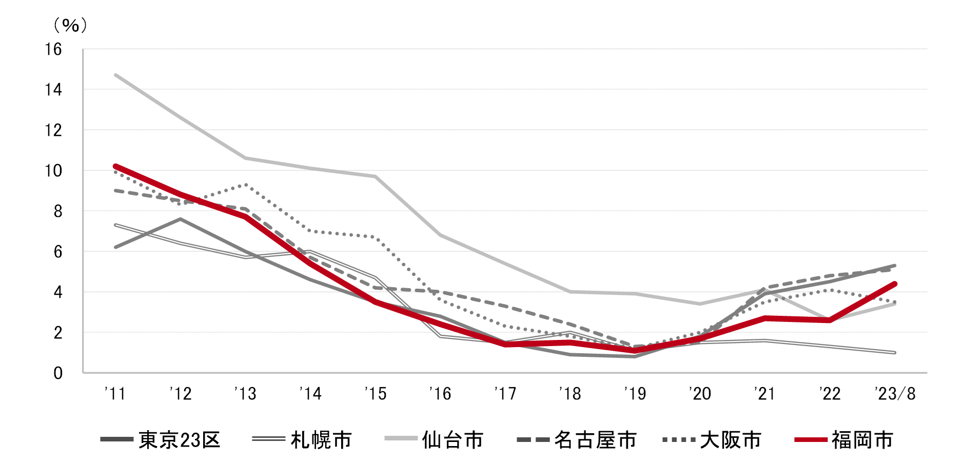 福岡市 全規模ビル 主要エリア 空室率