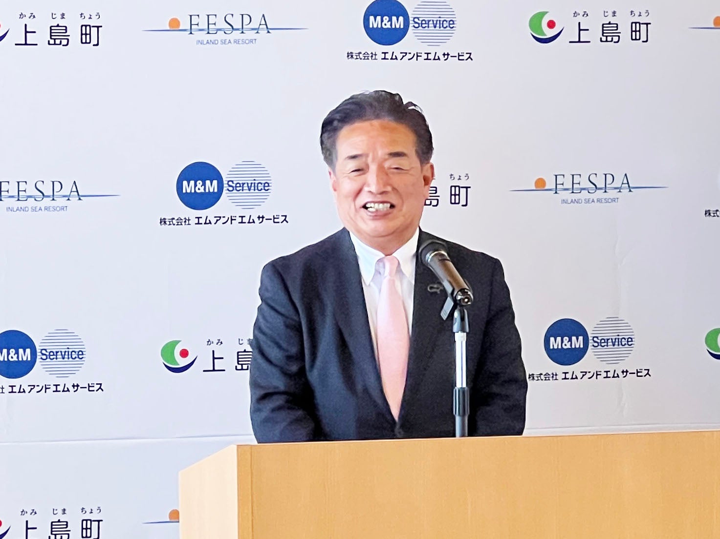 上島町民一同、この日を大変楽しみにしていました。歴史豊かな上島町に、「オールインクルーシブ」という新しいサービスが加わることは、大変有意義なことだと思っております。国内外から訪れるお客様をお迎えし、フェスパが、上島町の魅力を世界へ発信する起点となることを期待しています。