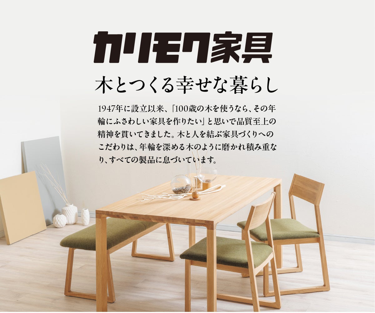 1940年に加藤正平が愛知県刈谷市で木工所を創業。木製品の加工業を営み、そこで培った技術を元に、1960年代に自社製の木製家具の販売を開始した家具メーカーです。「100歳の木を使うなら、その年輪にふさわしい家具をつくりたい」をモットーに機械による高度な加工と職人の技を融合させる 「ハイテク & ハイタッチ」で家具づくりに取り組んでいます。また安心・安全・環境配慮の観点から、(一社)日本家具産業振興会が定める国産家具表示認定基準を満たしています。