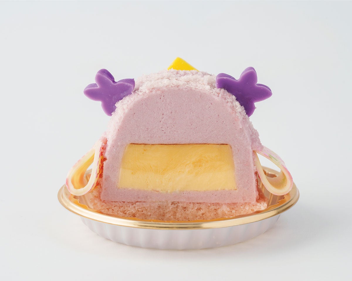 日本一豪華な嫁入り道具「国宝 初音の調度」。「初音の調度」とともに尾張徳川家に嫁入りした将軍家の姫君「千代姫」をイメージし、名古屋コーチンの卵を使用した濃厚なプリンを、白桃と赤桃を合わせた上品なババロアで丁寧に包み込んでいます。また、羽の部分は着物の袖に、花の髪飾りと扇子をしつらえ、美味しさと華やかさを兼ねそなえた、特別なぴよりんになっています。