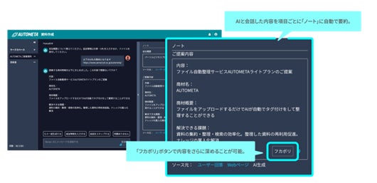 ファイル自動整理サービスAUTOMETAにAIと会話するだけでユーザーごとに最適化された資料を作成できる新機能「HanashiAI(ハナシアイ)」β版が登場