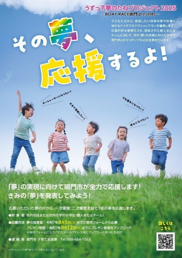 鳴門市では今年度、県内初の取り組みとして、子どもの「夢」の実現に向けて市が支援を行う「うずっ子夢のたねプロジェクト2025~BOAT RACE鳴門 presents~」を実施します。