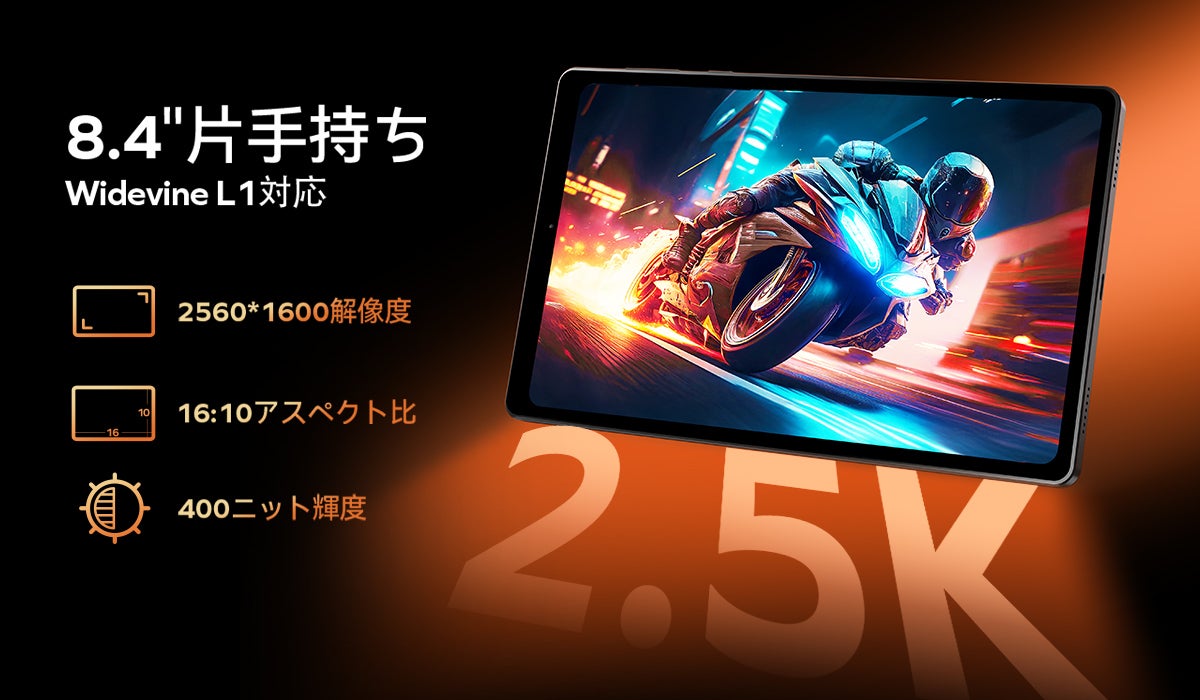 コンパクトな8.4インチタブレットでありながら、6500mAhの大容量バッテリーを搭載。頻繁な充電の手間を減らし、長時間の使用にも安心です。実際のテストでは、最大8時間の連続ローカルビデオ再生が可能。