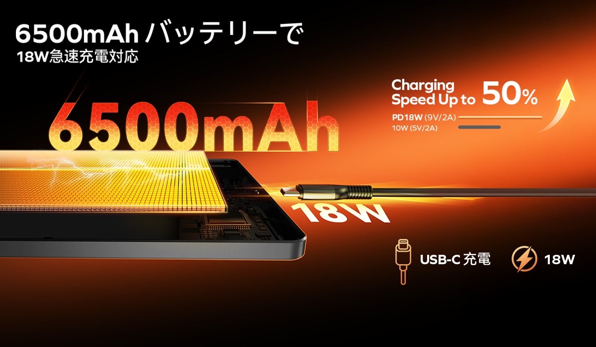 さらに、Type-Cポートを採用し、PD18W急速充電に対応。スピーディーな充電でより快適な使用体験を提供します。