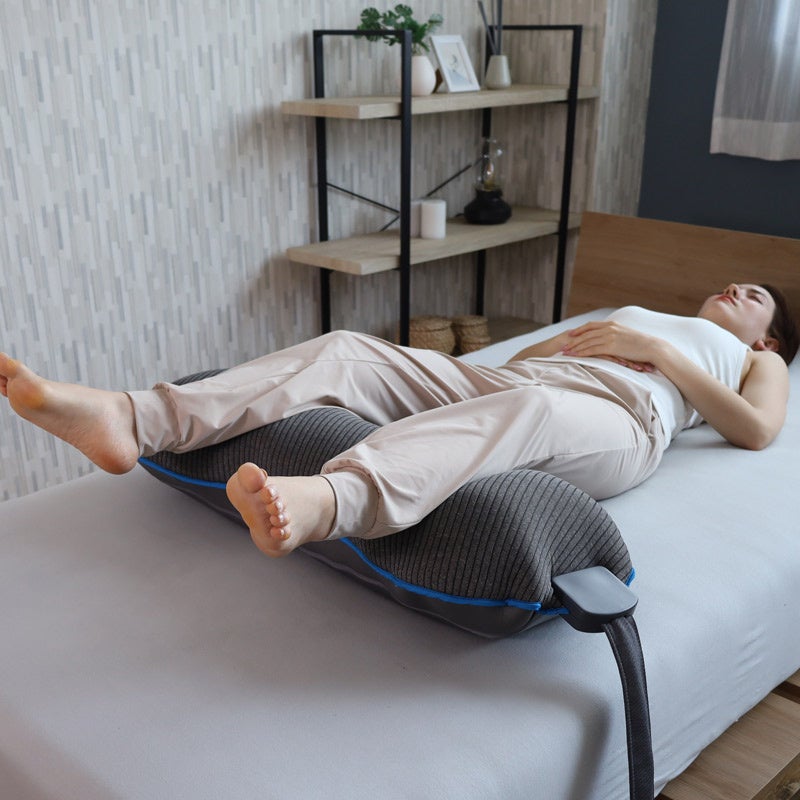 スイッチを起動すれば、エアバックが膨張し自動で寝ながらストレッチができる足枕です。寝落ち必至の足枕は母の日の贈りものにぴったりです。