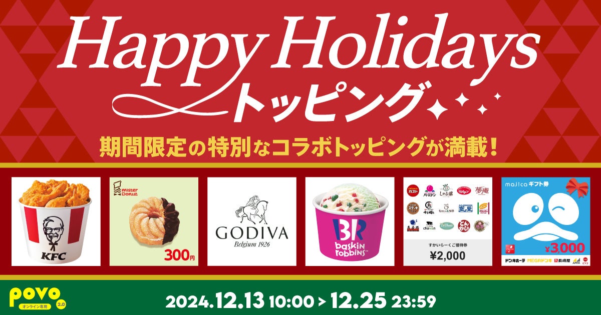 povo、ホリデーシーズンにぴったりなKFC・GODIVAなどとのコラボトッピング6種を12月25日まで提供