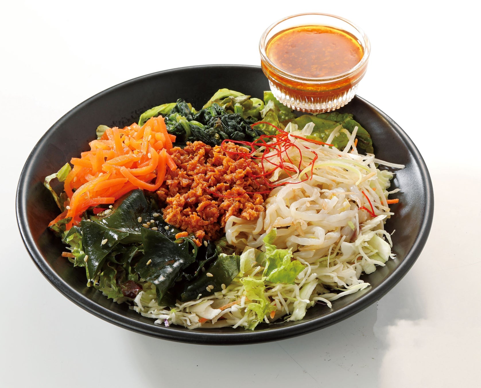 もやし、ほうれん草等、具材を混ぜ合わせ、ごま油香るチョレギドレッシングでお召し上がりください。