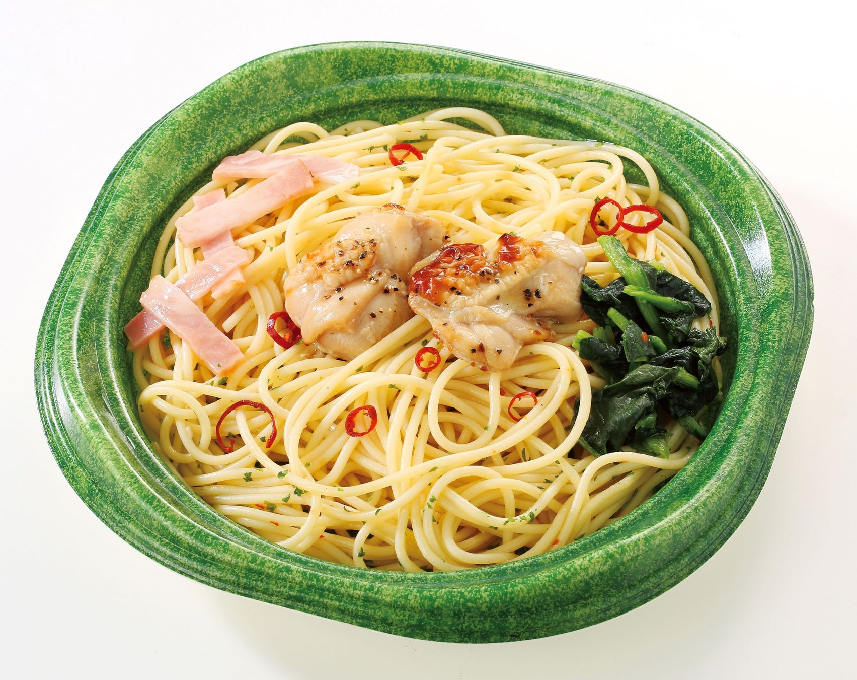 定番のペペロンチーノに香ばしく焼き上げたグリルチキンをトッピングすることで、食べ応えのある商品に仕上げました。