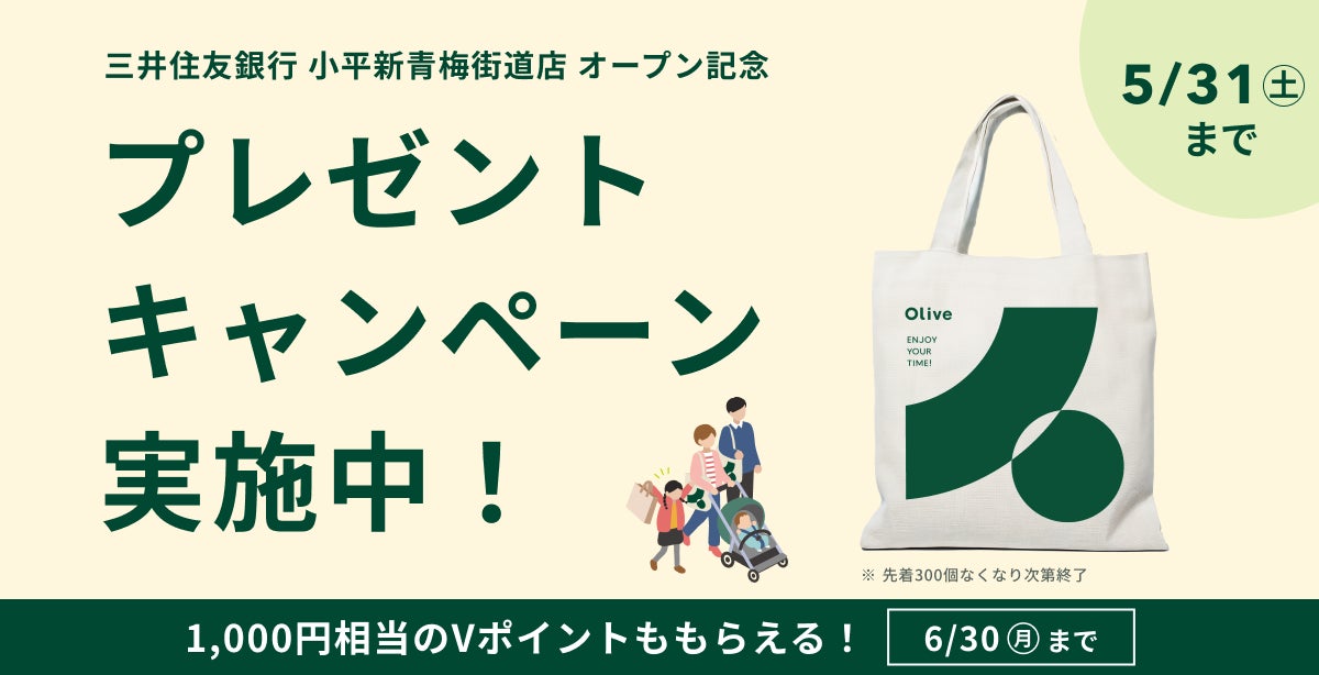 本店舗には銀行窓口はございませんが、専門スタッフによる「Olive」のご案内や、デジタルでの各種お手続きサポート、無人受付端末による各種お手続きに関するご照会を承っております。店内では「Olive」の体験コンテンツをご利用いただける他、どなたでもおくつろぎいただけるように快適なソファをご用意しています。この新店舗が入る商業施設には、同日に「ユニクロ 小平新青梅街道店」もオープンします。 引き続き、お客さまの「豊かな生活」と「幸せな成長」の実現に貢献できる本邦NO.1のリテール金融ビジネスの確立と更なる成長に向けて、取り組んで参ります。