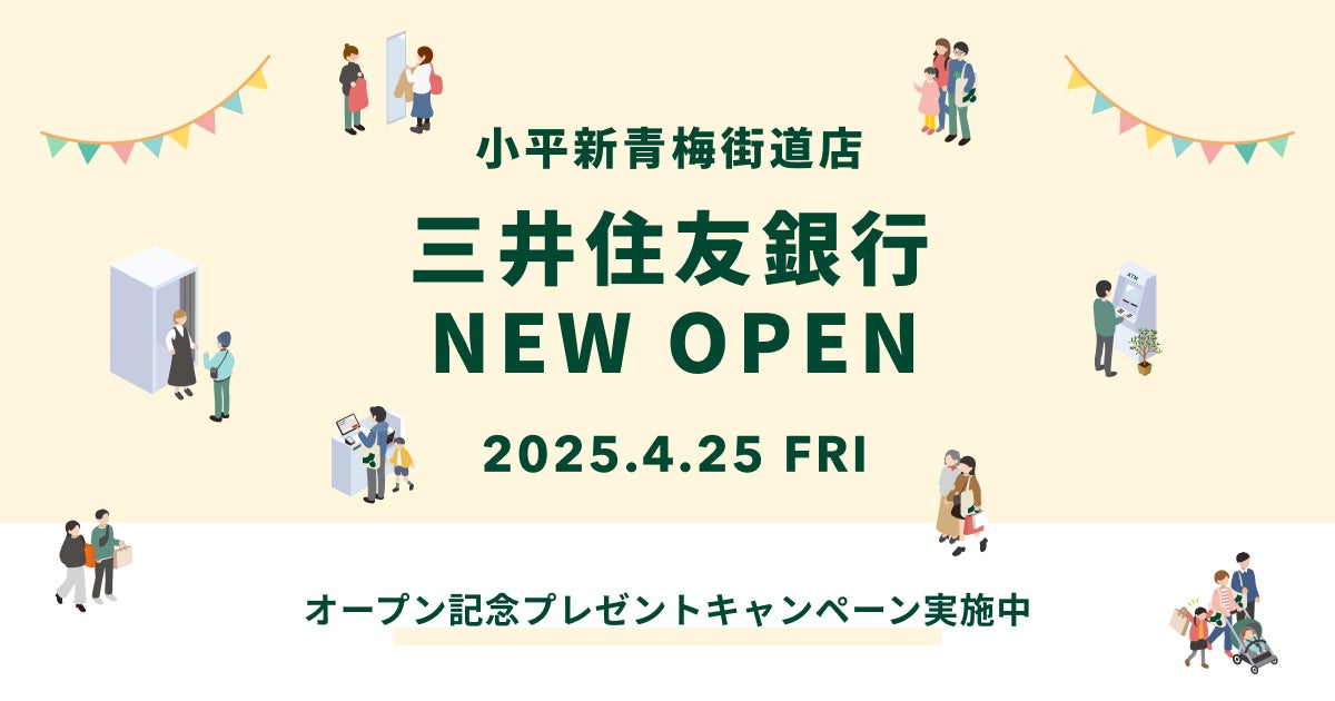 株式会社三井住友銀行(頭取 CEO:福留 朗裕、以下「三井住友銀行」)は、2025年4月25日(金)に「小平新青梅街道店」を新設することをお知らせいたします。