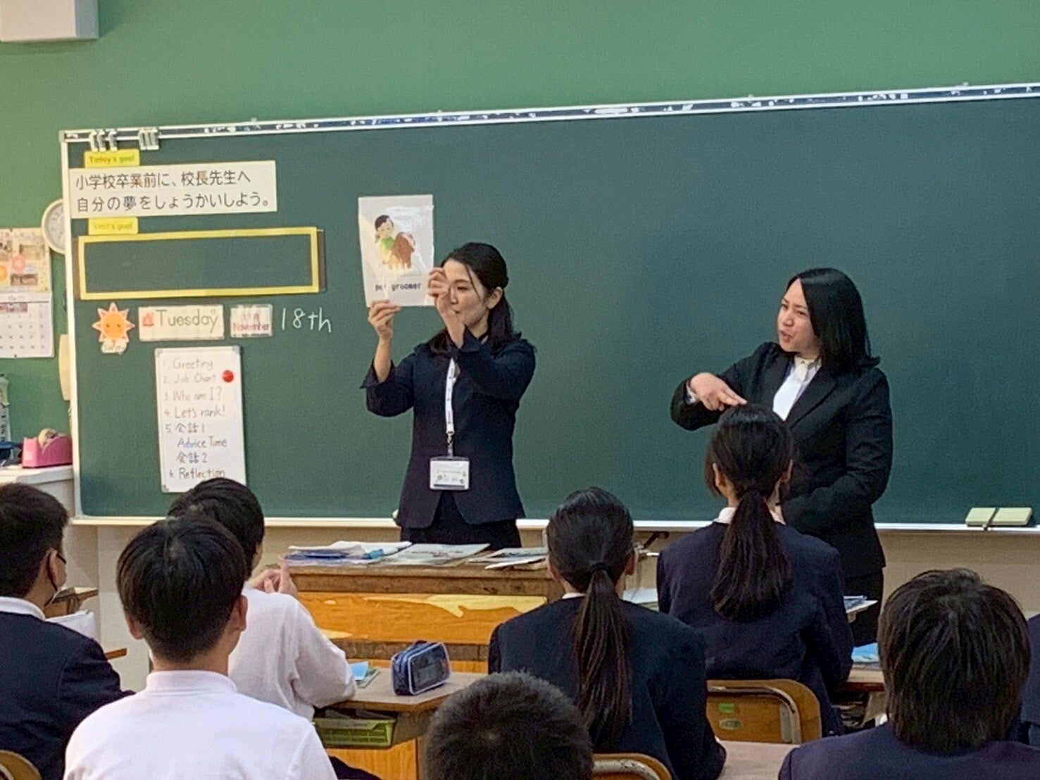 この「今治型学校教育」が目指すのは、知識として英語を学ぶだけではなく、英語を“使う”、英語で”伝える”力の獲得です。そのためには、教科書に沿った学習だけではなく、生きた英語と触れ合う実践的な学習機会を増やすことが必要で、教科担任とALT(Assistant Language Teacher:外国語指導助手)が連携した取り組みが欠かせません。