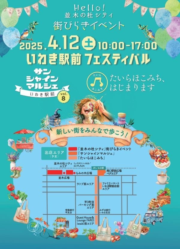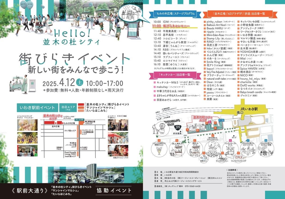 なお、同日11時より並木の杜シティ内 もみの木広場にていわき市長内田広之氏出席のオープニングセレモニー(テープカット・バルーンセレモニー)が行われます。