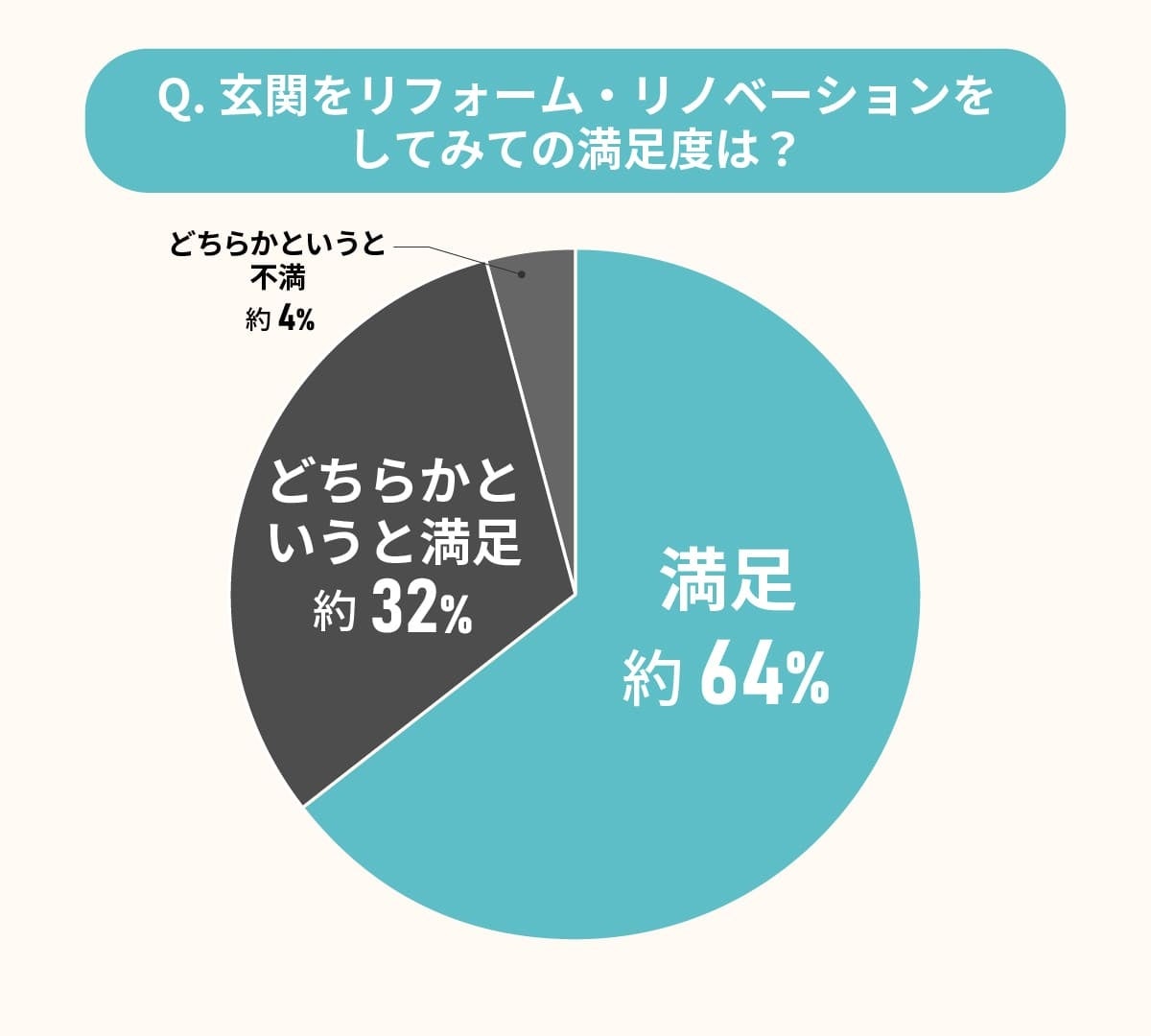 玄関のリフォーム・リノベーションの満足度とその理由について聞いてみました。実際に使ってみてわかったことなどを紹介していきます。