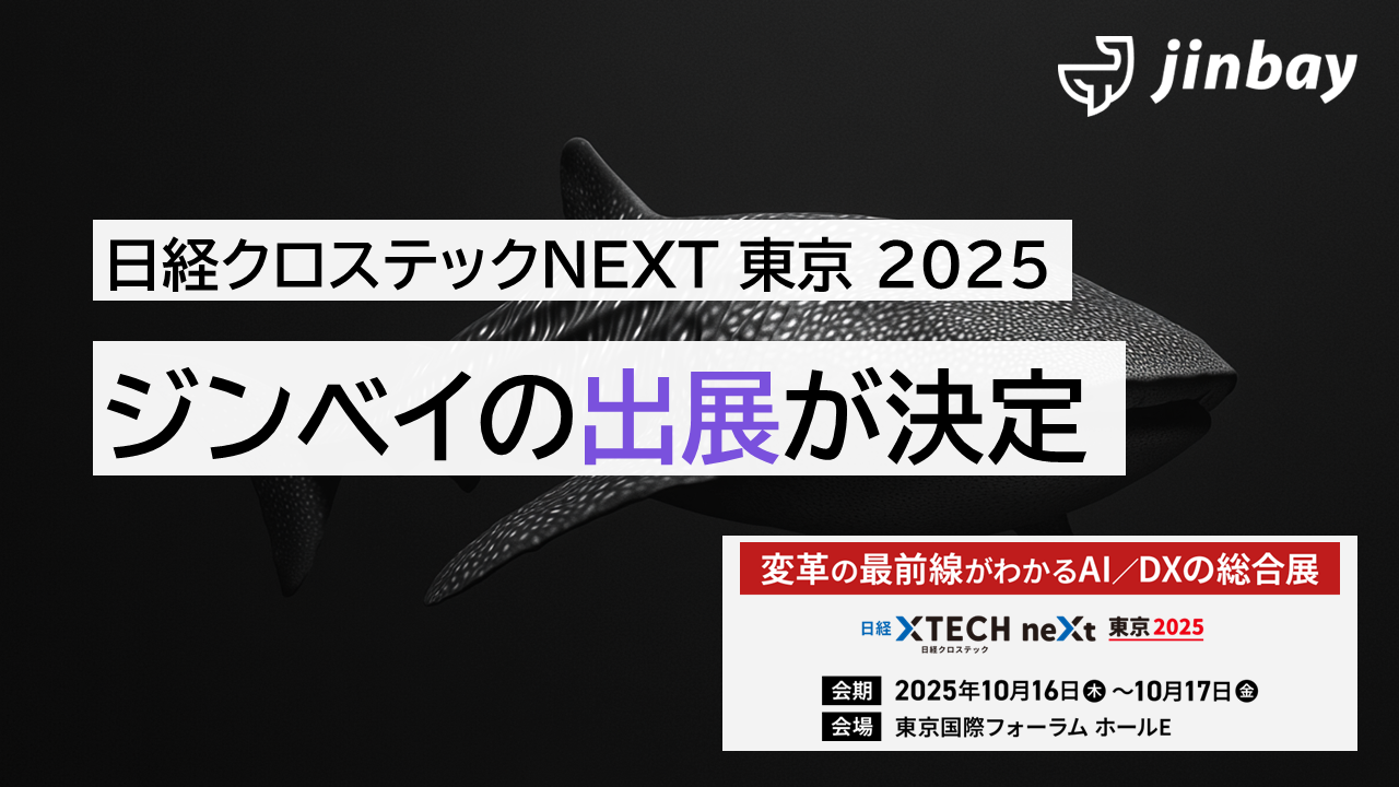 ジンベイ株式会社(本社:神奈川県横浜市、代表取締役:上田英介)は、2025年10月16日(木)~17日(金)に東京国際フォーラムで開催される「日経クロステックNEXT 東京 2025」に出展いたします。