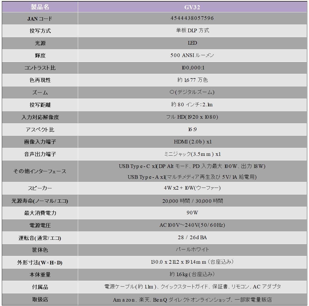 GV32: https://www.benq.com/ja-jp/projector/portable/gv32.html