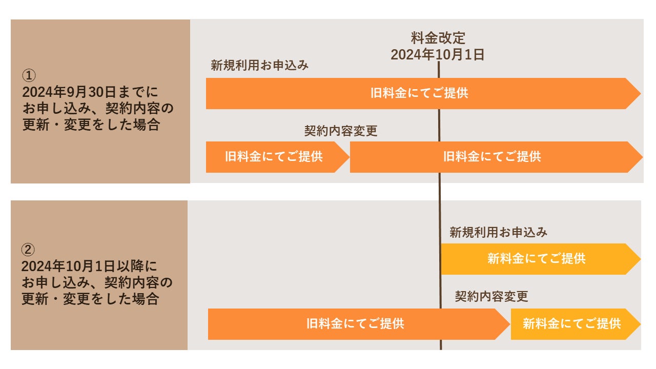 ② 2024年10月1日以降に新規契約、契約内容の更新・変更をした場合は、新料金が適用されます。