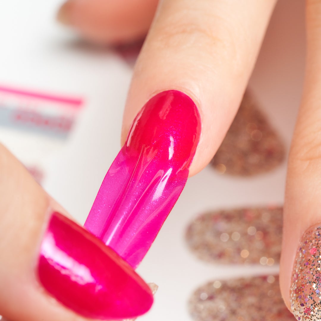 液体マニキュア成分を特殊技術でソフトシート化。薄く柔らかい1枚のシートは3層構造で、シートの上からトップコートを塗る必要はありません。とても薄いのに伸張性にすぐれ、爪へのフィット感も抜群です。しかも、爪を保護しながら健やかに保つ「化粧品*」だから、貼っているあいだも爪のしなやかさやうるおいを守ります。