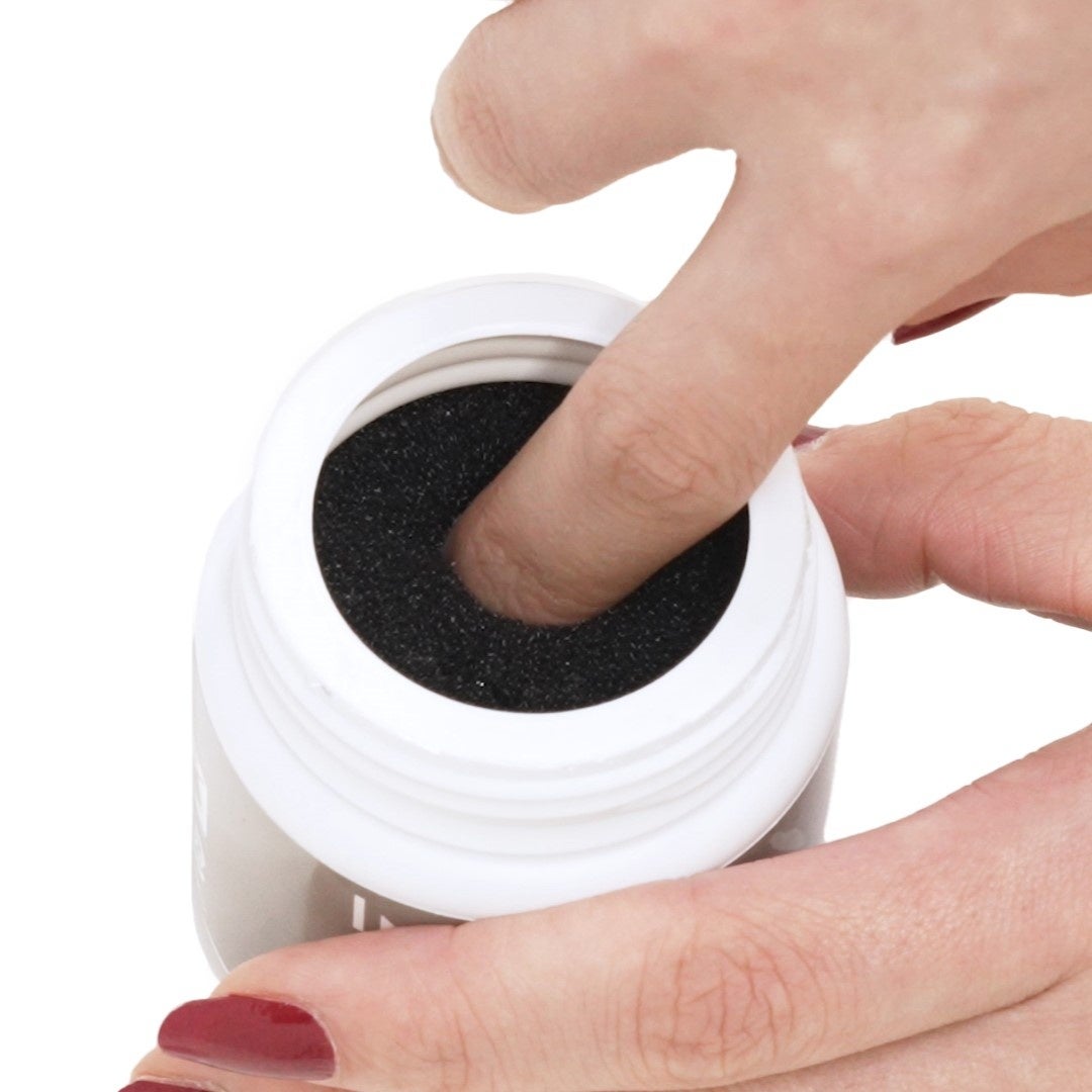 スポンジの切れ目に指を入れ、爪を押し当てて回し、マニキュアを落としてください。