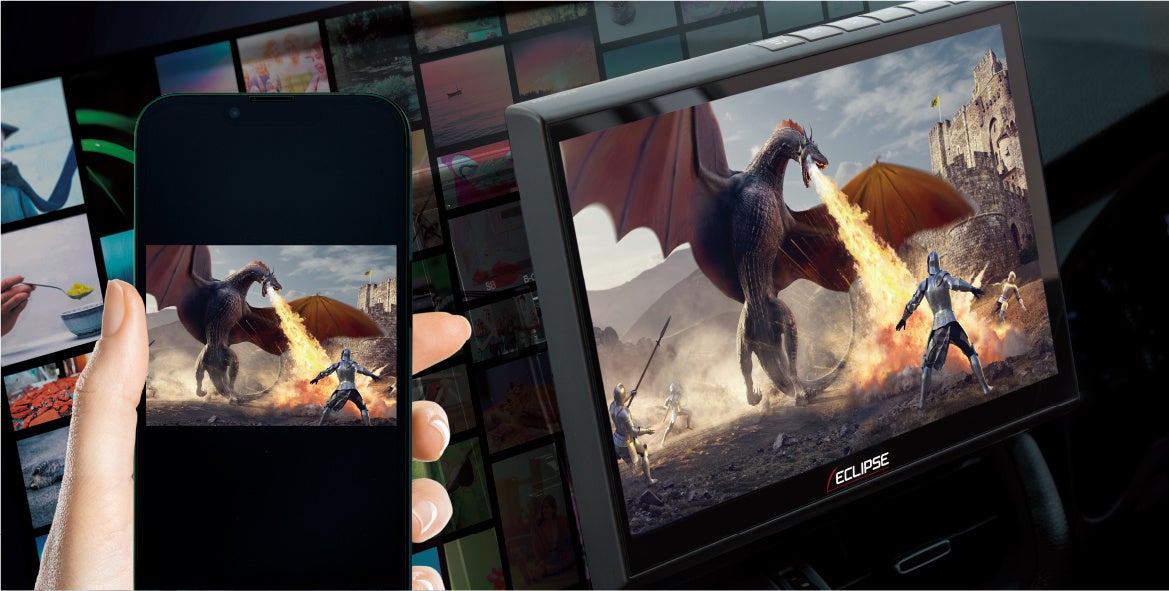 スマートフォンやゲーム機などHDMI対応機器との接続でYouTubeの映像やゲームをはじめ、様々なコンテンツも大画面に表示可能。お気に入りの映画やゲームをクルマでもHD画質で楽しめます。また、ディスプレイで再生している映像を、後席モニターでも楽しむことができます。