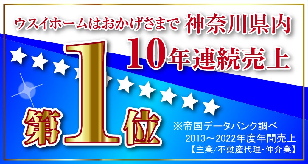 不動産業・建設業のウスイホーム株式会社(本社:神奈川県横須賀市、代表取締役社長:木部浩一)は、帝国データバンクの調査の結果、2013年度から10年連続で、主業が不動産代理・仲介業者の中で、売上高が第1位となりました。