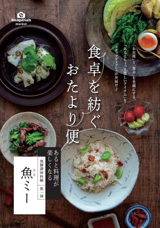 初回の「食卓を紡ぐおたより便」では、秋田生まれの発酵調味料「魚ミー」を届けます。スナップディッシュ編集長・佐々木が数ある日本伝統の発酵調味料の中から、地元・秋田で愛される伝統の調味料をセレクトしました。