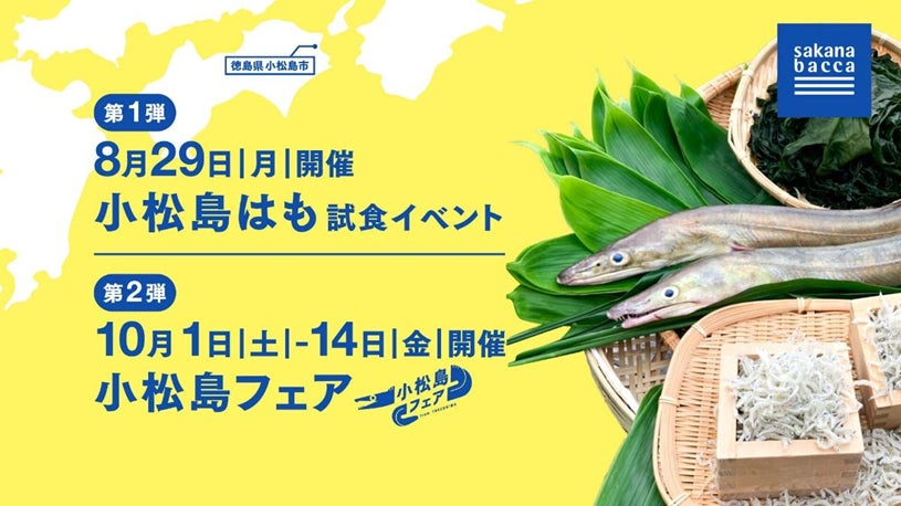 この度、より一層の認知および流通量の拡大を目指し、第1弾として首都圏飲食店を対象とした「小松島はも 試食イベント」を、第2弾としてsakana bacca 4店舗にて一般消費者を対象とした「小松島フェア」を開催します。なお、飲食店を対象とした「小松島はも試食イベント」には、小松島市長の参加を予定しています。