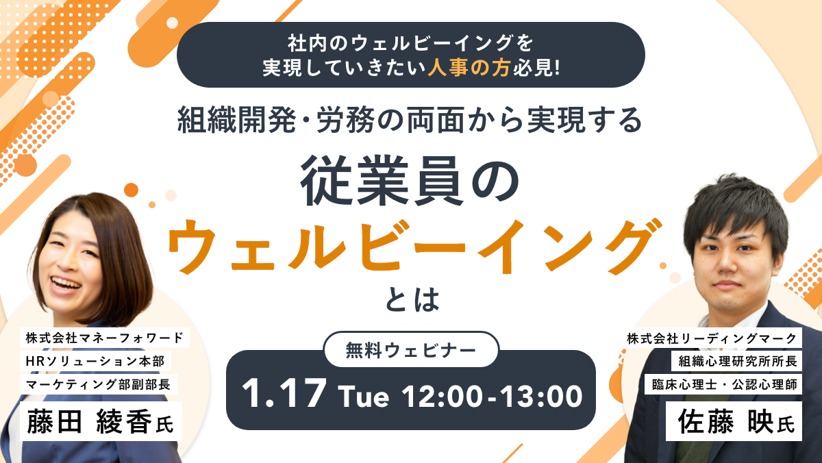 ミキワメ、1/17にマネーフォワード社と「組織開発・労務の両面から実現する、従業員のウェルビーイング」をテーマにオンラインセミナーを開催