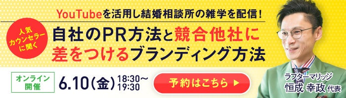 【6月10日開催】結婚相談所開業・副業を検討の方向けオンラインセミナー!YouTubeを活用し結婚相談所の雑学を配信!