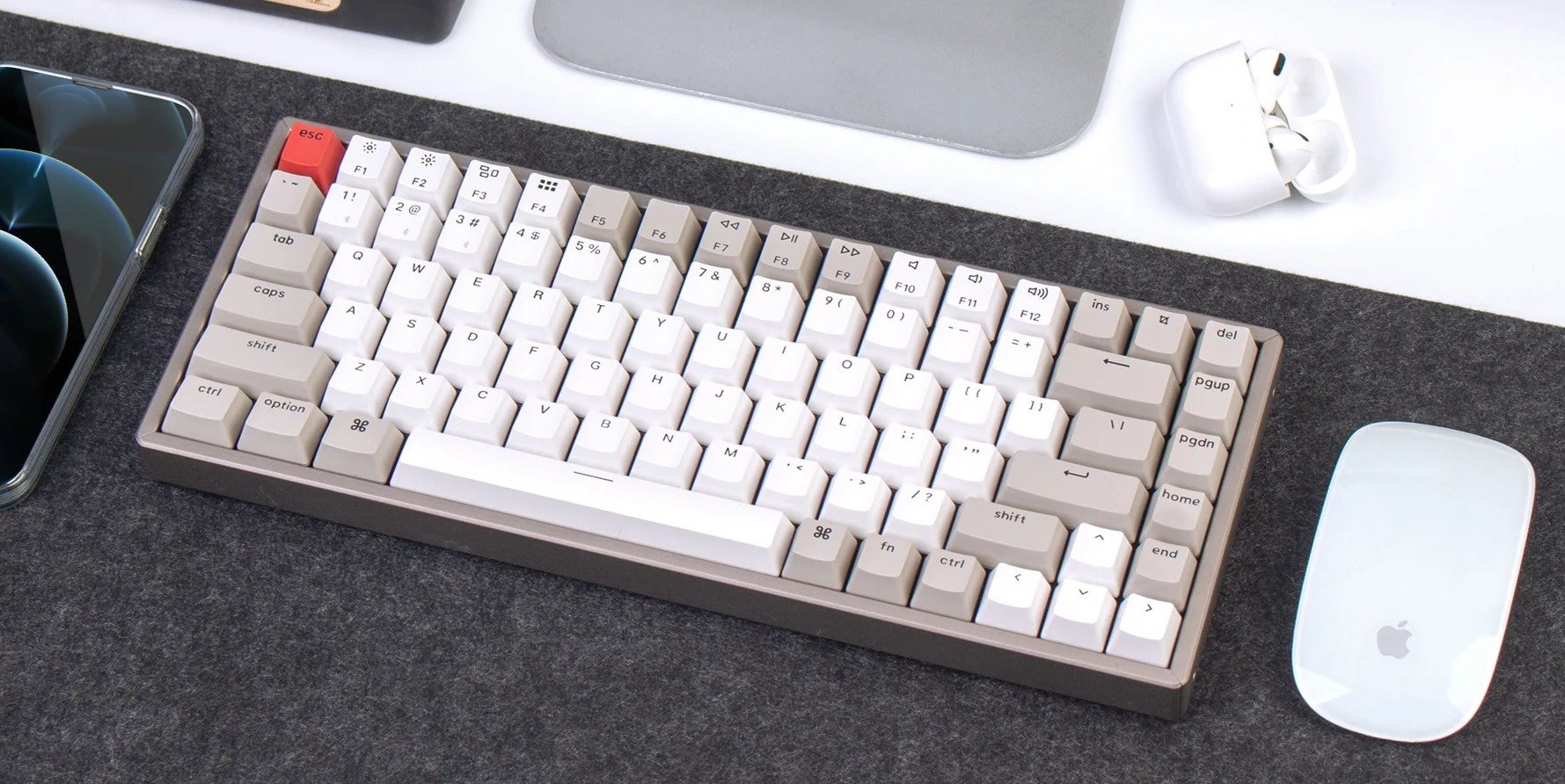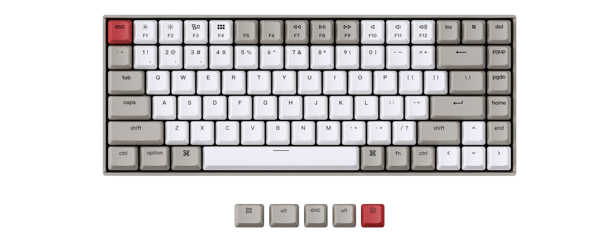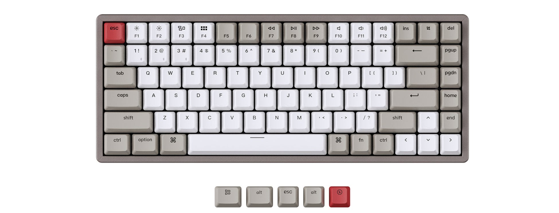 Mac、Windows、iOS、Androidなど、すべてのOSに対応しています。K2は、Macレイアウトのメディアキーを搭載した数少ないメカニカルキーボードです。これにより、従来のmacOSと同じメディアキーをすべて使用することができます。すべてのK2キーボードには、Mac用とWindows用にそれぞれ3つの専用キーキャップが付属しています。