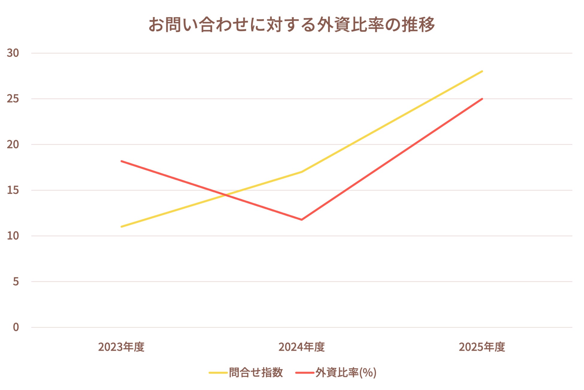また2023年度と比較しても高い比率となり、外資系企業からの注目が一段と高まっていることが明確に表れています。