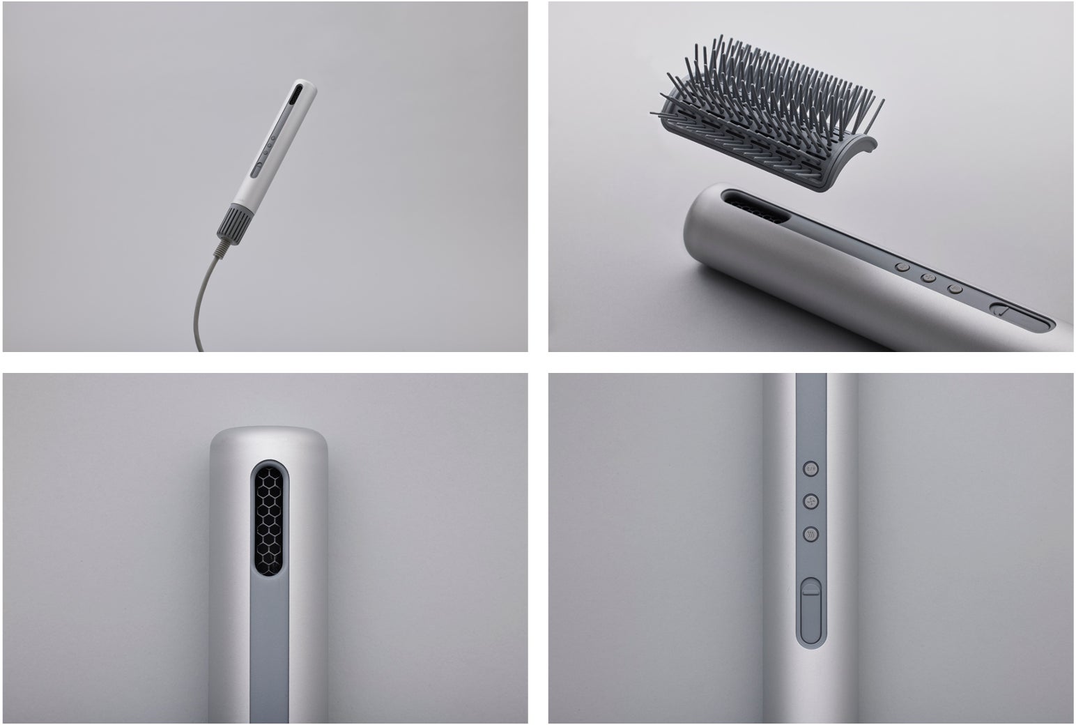 2017年より5年以上の歳月を費やし、実現した、理想のドライヤーのカタチ。リレー競技用バトンのサイズでありながら、軽量化と効率的な送風機能を両立した前例のないドライヤーです。持ちやすく軽量なボディで使用中の疲労を軽減。消費電力は800Wながら、約2.0m³/分のパワフルな風量を提供します。付属のカールブラシは、マグネットで簡単に取り付けられ、乾かすだけでなくスタイリングもできるワンストップソリューション。毎日のヘアドライを「疲れず」「早く」「思い通り」にします。これまでに、「2022年度グッドデザイン・ベスト100(主催:公益財団法人日本デザイン振興会)」を受賞しています。