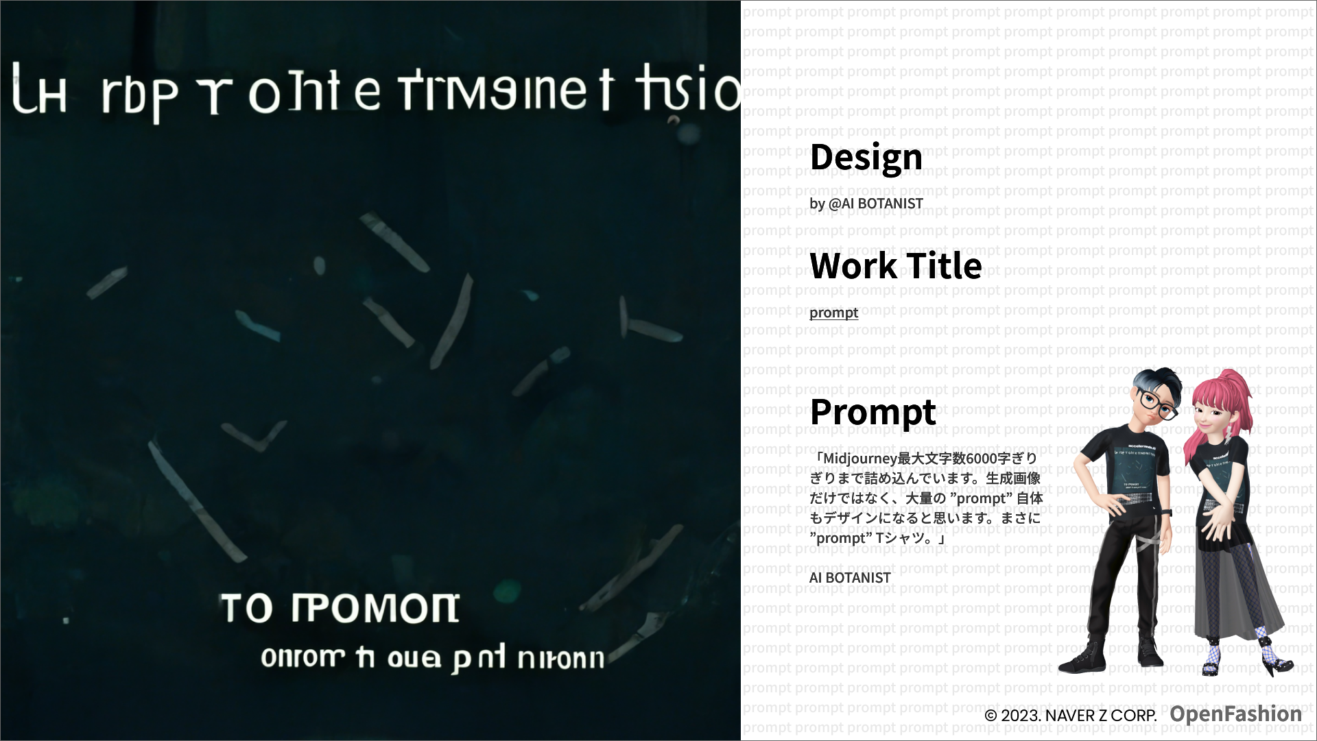 掲載されたデザイン38作品は全て今年7月に開催し、デザイン総数が6,400を超えたファッションデザインコンテスト「accelerando.Ai - AIファッションチャレンジ #3」の受賞作品です。8月にはこれらの受賞作品をプリントした「プロンプトTシャツ」が、人とAIが創る未来のファッションブランド「accelerando.Ai(アッチェレランドドットエーアイ)」よりリアルとデジタル(※)で同時発売となりました。
