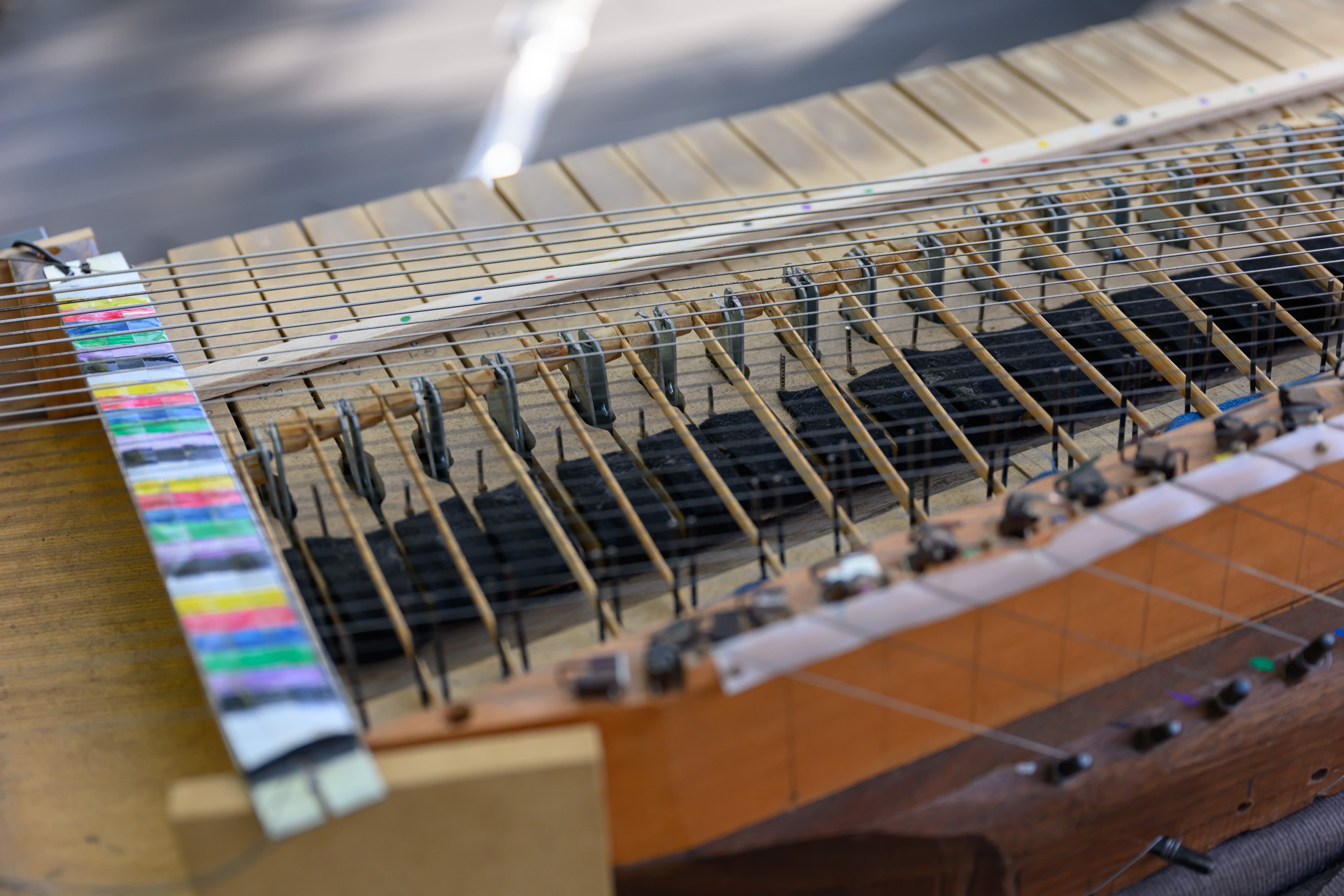 ボストン生まれのアーティスト「Sami Elu(サミエル)」による割り箸ピアノコンサートでは、廃材と割り箸、ピアノ線を使った世界にひとつだけの木製弦楽器「割り箸ピアノ」でオリジナルの5曲を披露。琴のようなテーブルトップ式のピアノを弾きながら、廃材のドラムキットでリズムを奏で、自然と調和した唯一無二のサウンドを楽しんでいただきました。