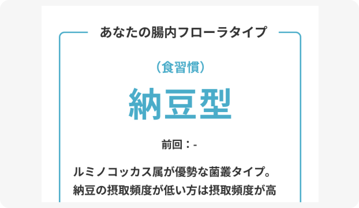 腸内フローラのタイプに応じて、花粉症のセルフケアに活用できる食事や生活習慣のアドバイスを見ることができます。