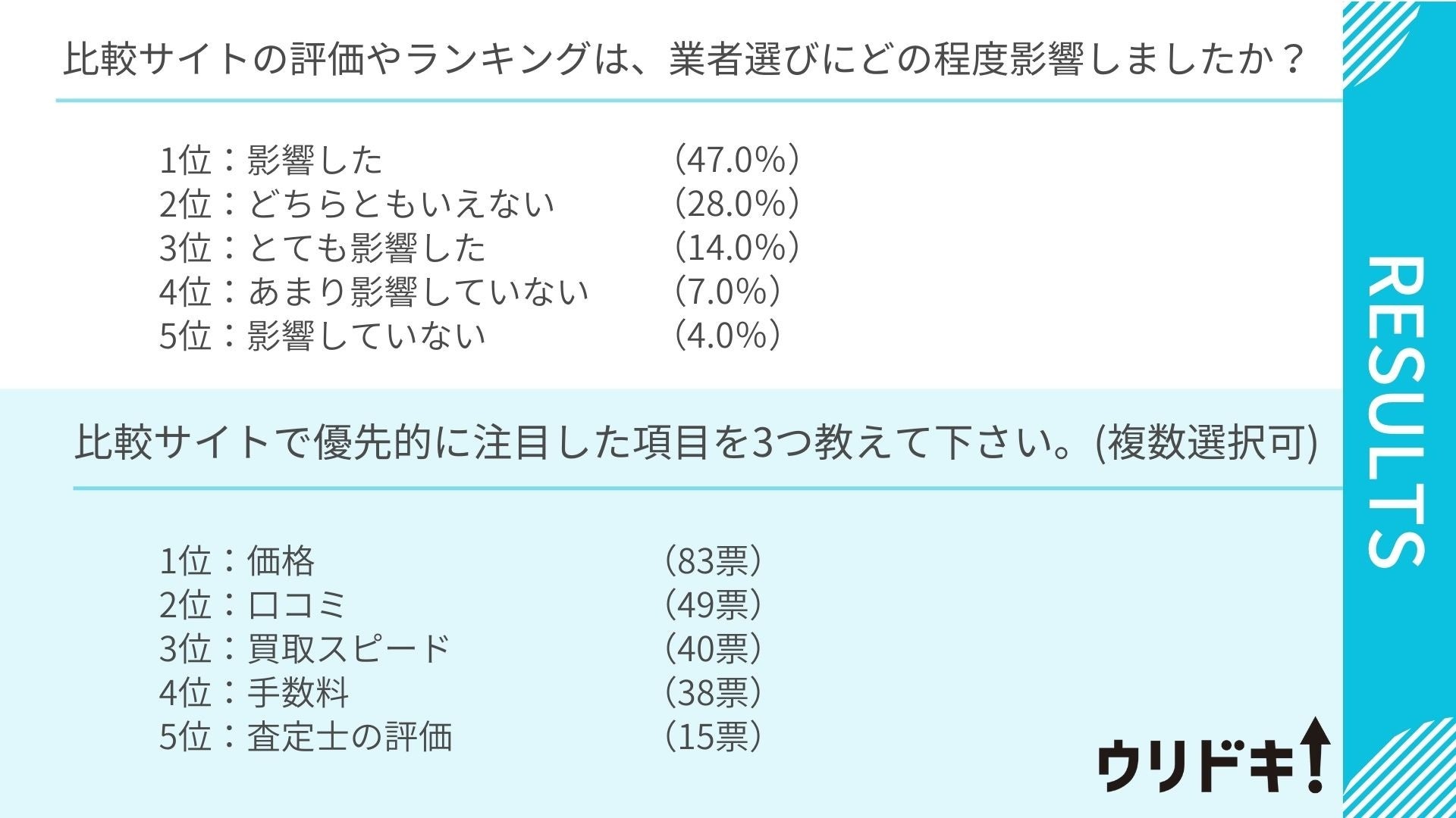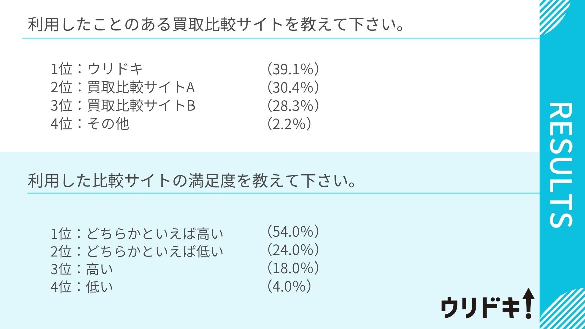 利用したことがある買取比較サイトに関して、「ウリドキ」という意見が最も多い結果となりました。