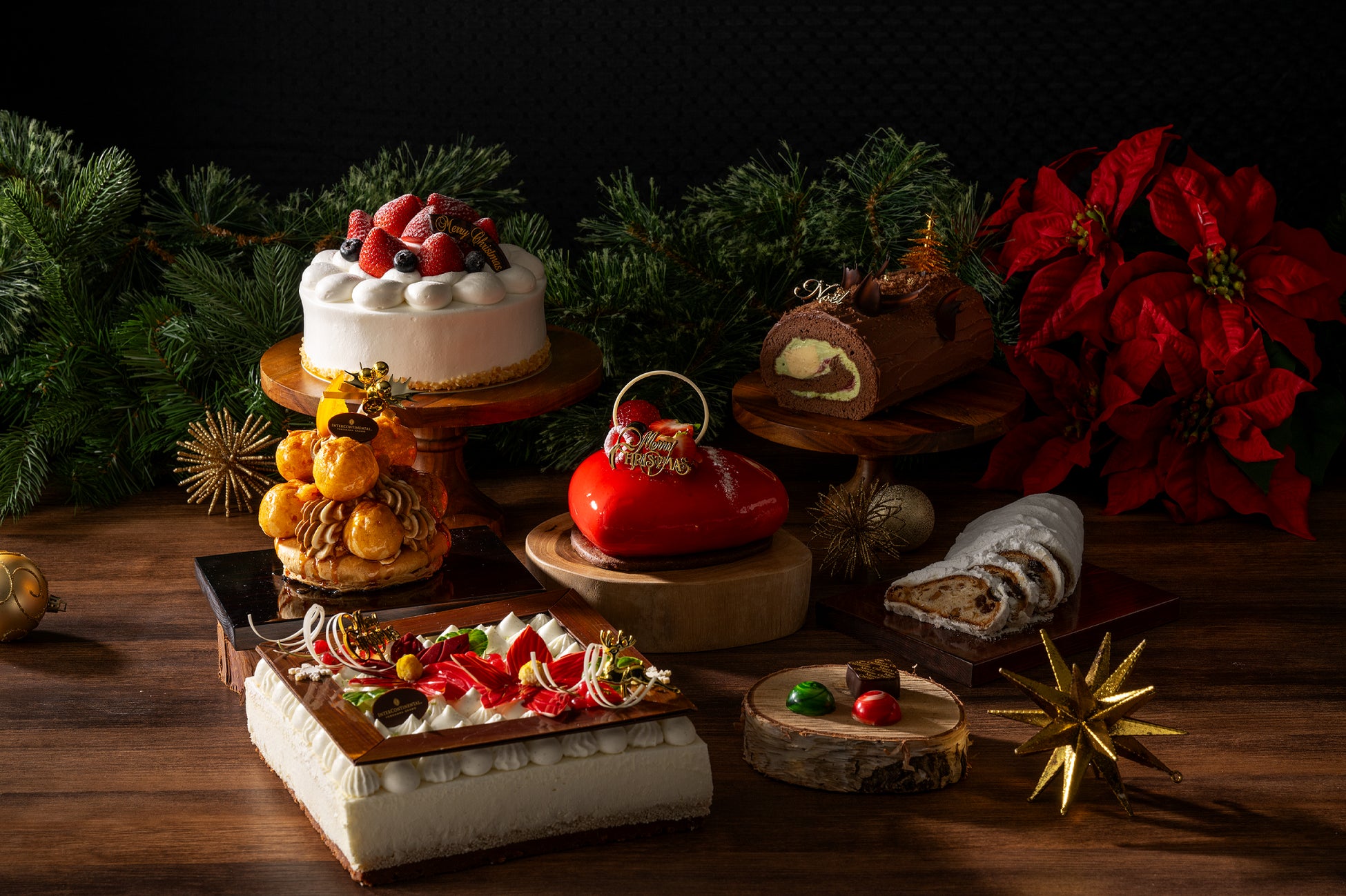 さらに今年は個性あふれる3種の新作ケーキも登場。色鮮やかで美しいハート型のフランボワーズの中に、ピスタチオブリュレやベリームースが入った「グラン クール」、つややかな飴細工をまとったプチシューをキャラメルクリームとともに美しく積み上げた「クロカンブッシュ オランジュ」、大輪のポインセチアを額絵のようにデザインした「ボヌール」など、どれも特別な日を祝うのに相応しい逸品となっています。