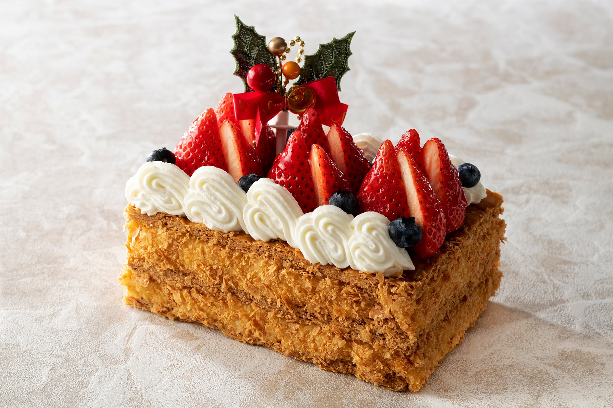 香ばしくキャラメリゼしたサクサクのパイ生地と濃厚なカスタードクリームを交互に重ね、プレミアムいちごとして知られる希少な栃木県産の「スカイベリー」とブルーベリーをふんだんにあしらいました。アルコール不使用ですので、小さなお子様やお酒が苦手な方でもお楽しみいただけます。