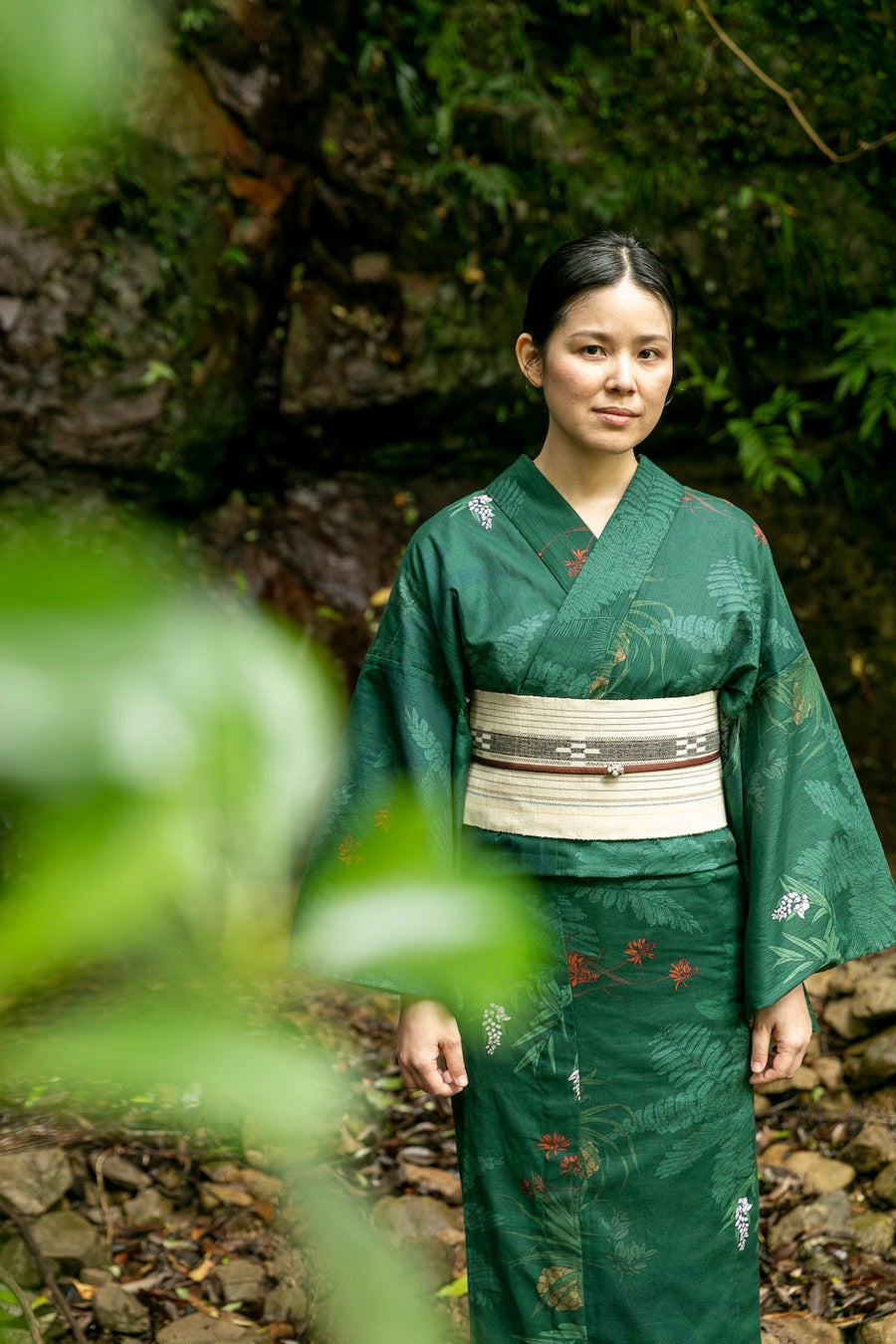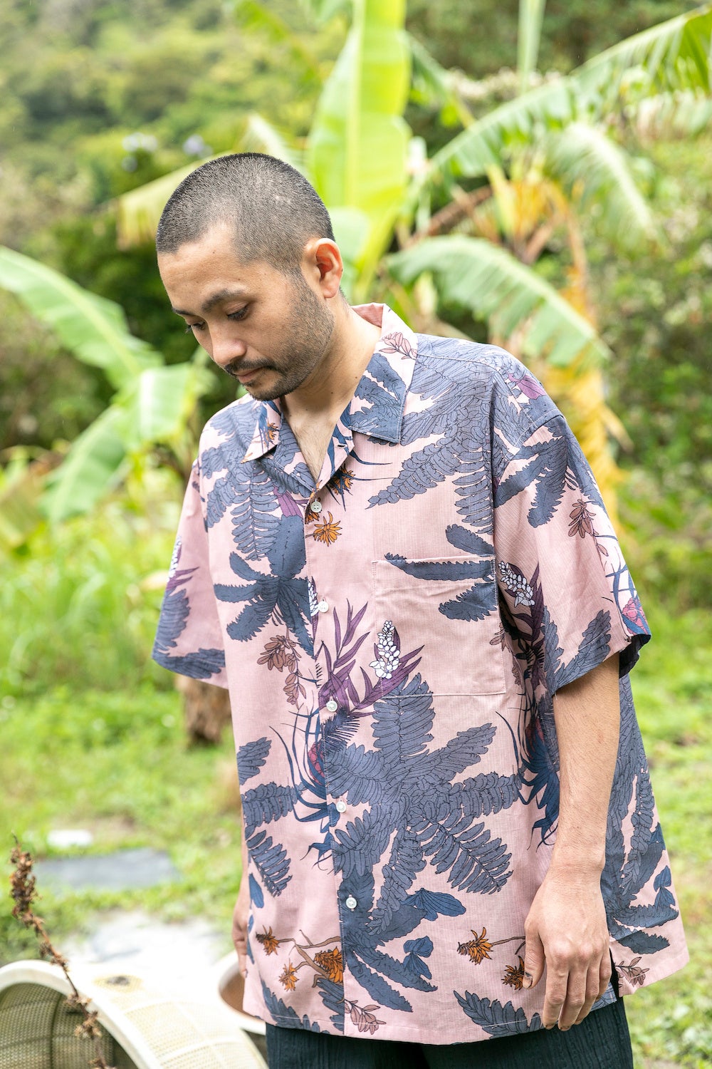・シャツ「奄美の森」深緑/珊瑚 30,800円(税込)
