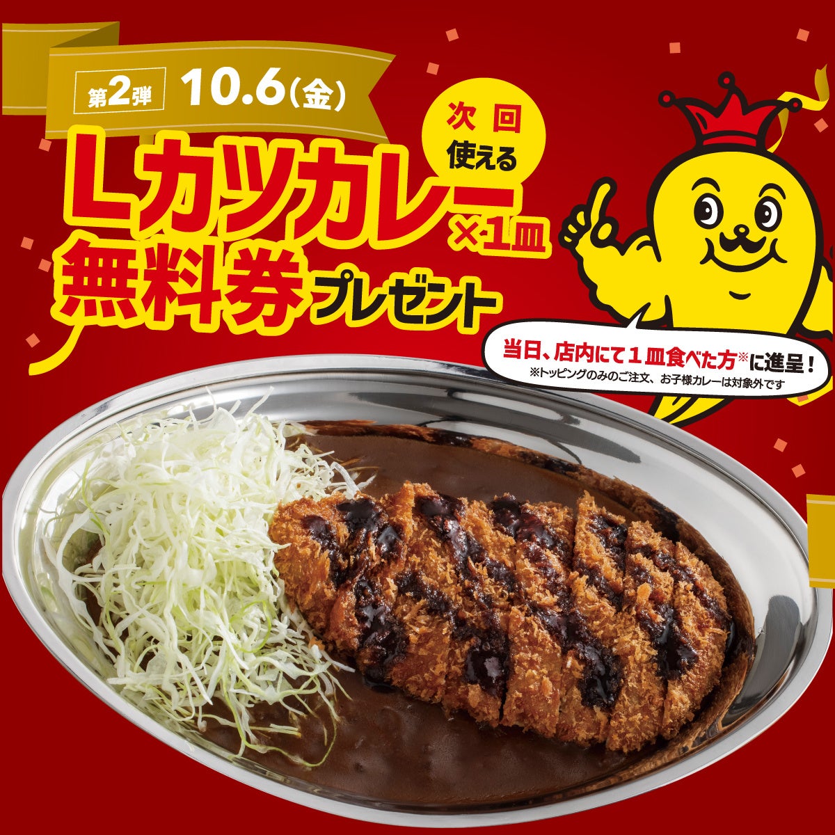 「Lカツカレー(レギュラーサイズ)無料券」1枚プレゼント!