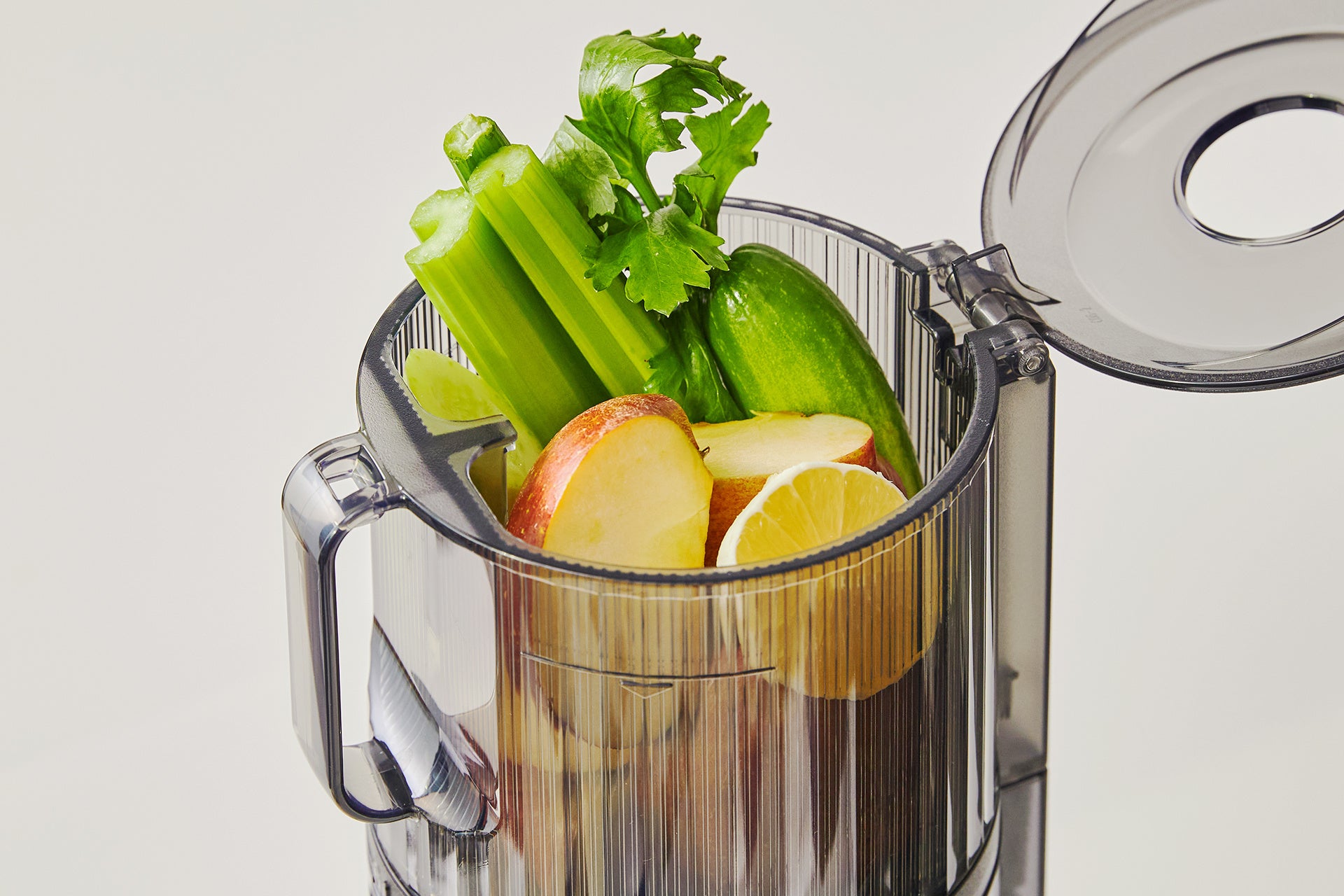 食材を細かくカットせずに、まるごと一気に入れられる「メガホッパー」により、様々な色々な野菜や果物の栄養素を摂り入れたコールドプレスジュースが短時間で搾れるようになりました。