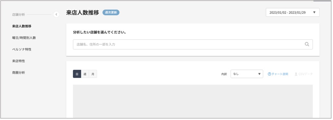 これまで月次更新であった、来店人数やデモグラ構成、行動DNA(来店者の行動嗜好性)などの分析が、週次更新にデータの更新頻度が向上しました。