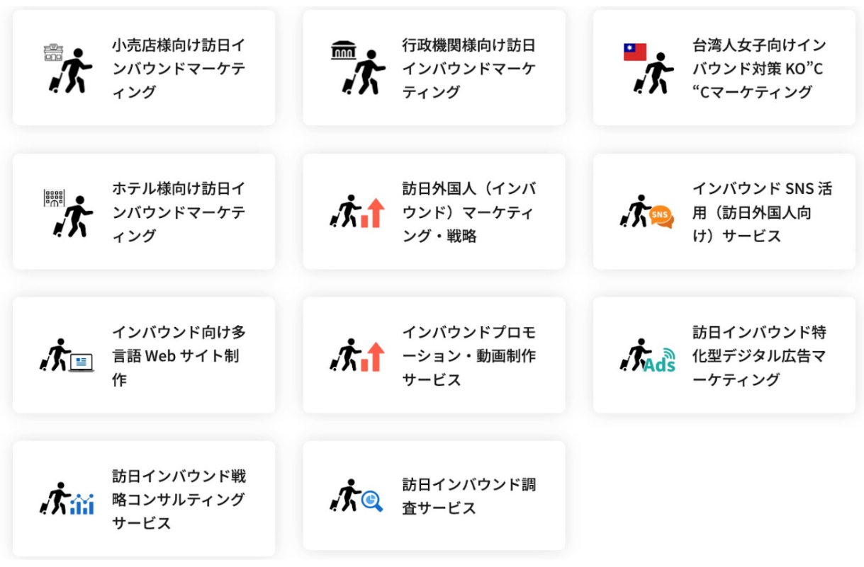 弊社では業種業態・対象国を問わずインバウンド対策関連のサービスを提供しております。