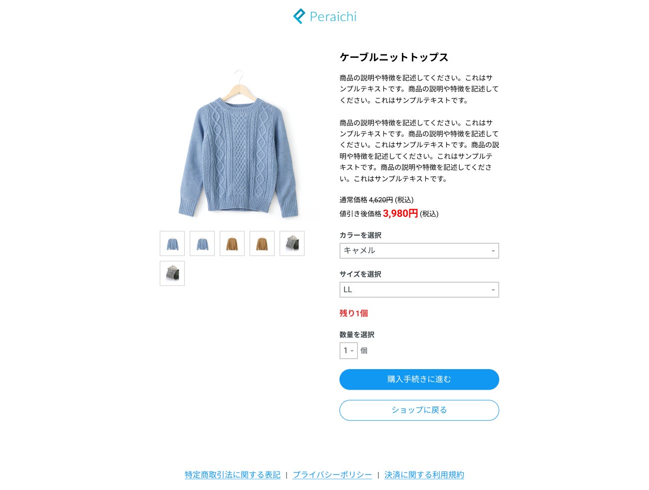 また、設定した商品販売の情報は、ペライチで作成したホームページ上にワンクリックで設定することができます。