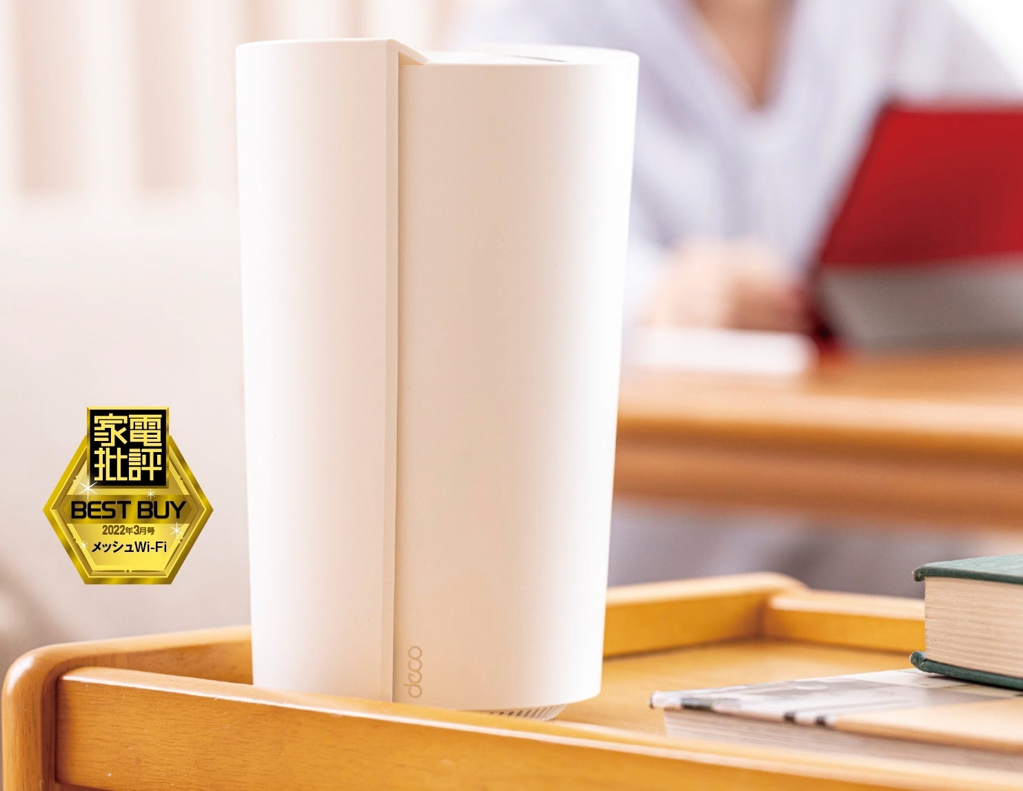 親機でのダウンロード平均速度が約1254 Mbpsと、今回検証した全製品の中でもブッチギリのトップだったのが「Deco X90」。LANポートが2つしかなく、有線接続が多い環境ではやや使いにくい部分もありますが、無線接続中心なら本機を選べば間違いありません。2.5Gbpsポートもあり、高速ネットもバッチリです。またデザイン性が高く、どんな部屋にもマッチするでしょう。