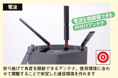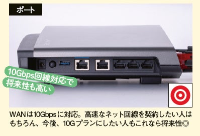今回の検証で飛び抜けた速度をマークしたのが、このバッファローのフラグシップモデル。どの製品も最大速度700~800Mbps程度で落ち着く中、本製品だけは最速値で1300Mbpsを軽く超えました。これならタイムラグが天敵のネットゲームでも安心して遊べます。インターネット回線も10Gbpsまで対応しているので、高速ネット環境が整っているなら、その実力をいかんなく発揮できるでしょう。またフラグシップだけあってメッシュ対応やUSB端子搭載など機能面もスキがありません。